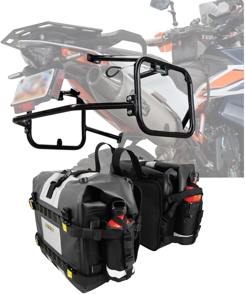 TUSK Pannier Racks with Nelson Rigg Hurricane Dry Saddlebags Black for KTM 790 Adventure 2019-2020,2024-2025