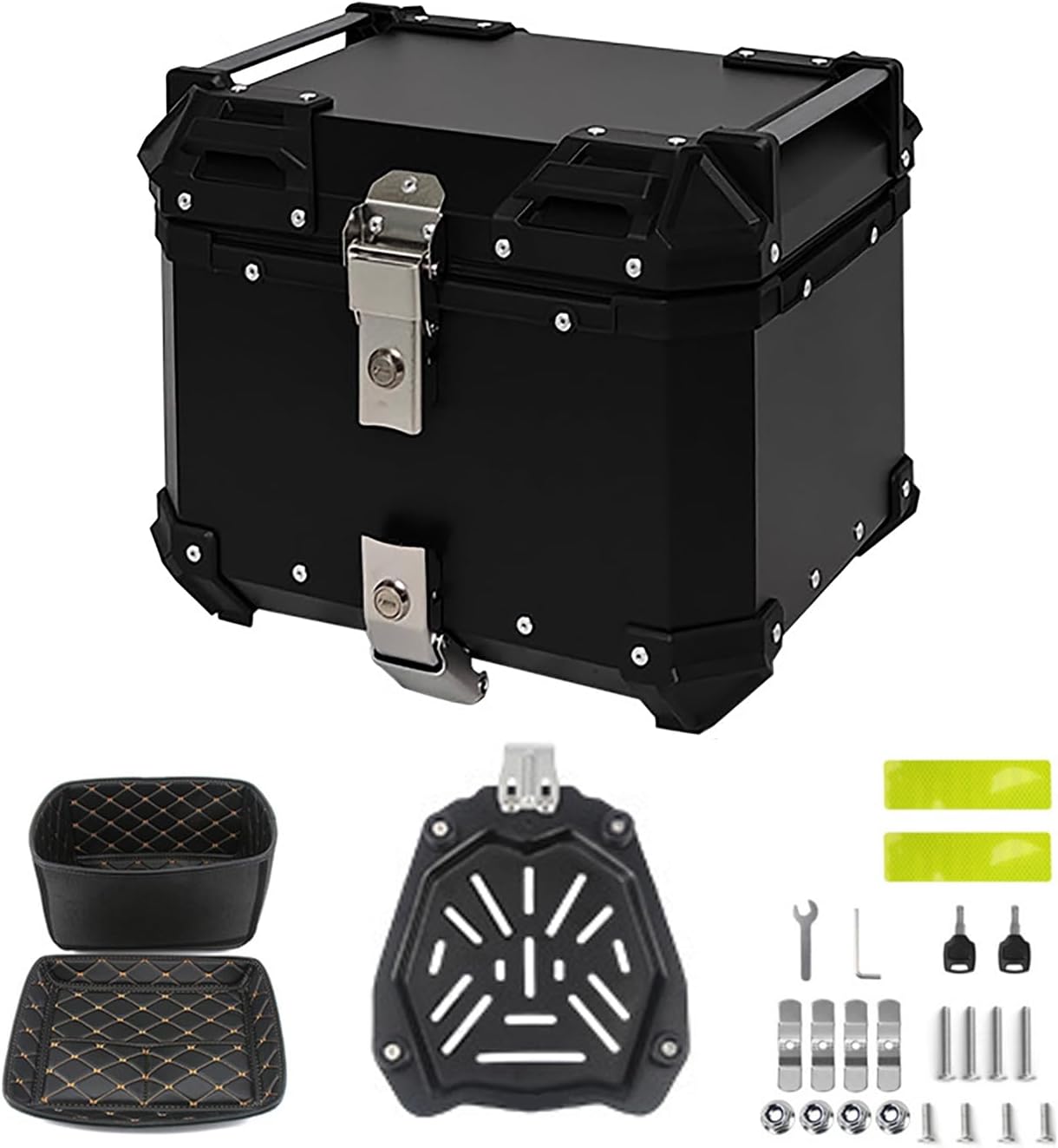 Motorcycle Top Case for Yamaha Super Tenere, Aluminum Alloy Motorcycle Tail Box, Motorbike Tail Box Trunk Tour Storage Carrier Case with Leather Lining,36L-Black