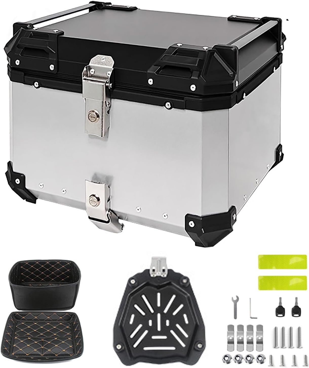Motorcycle Top Case for Peugeot XR7 2008 2009 2010 2011 2012, Aluminum Alloy Motorcycle Tail Box, Motorbike Tail Box Trunk Tour Storage Carrier Case with Leather Lining,55L-Silver