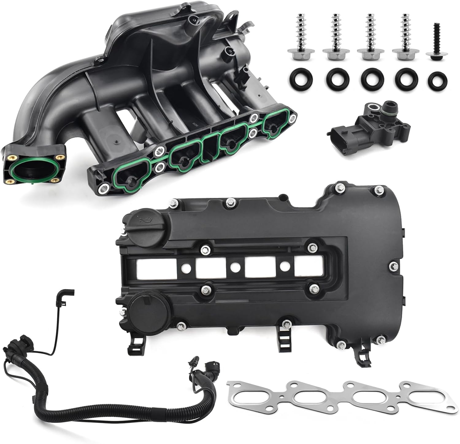 Engine Intake Manifold Valve Cover Kit Fit For 2012 2013 2014 2015 2016 2027 2018 2019 2020 2021 Chevy Sonic Cruze Trax Tracker Encore 1.4L Replaces# 615-380, 55573746, 25193343