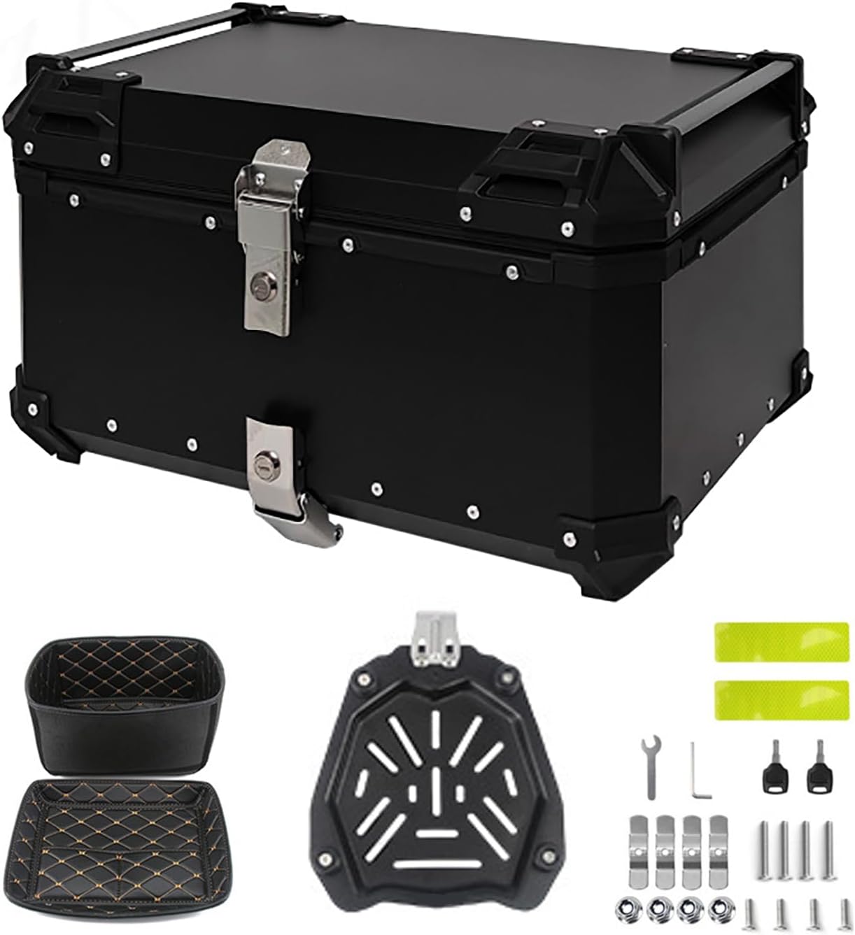 Motorcycle Top Case for Versys X300, Aluminum Alloy Motorcycle Tail Box, Motorbike Tail Box Trunk Tour Storage Carrier Case with Leather Lining,65L-Black