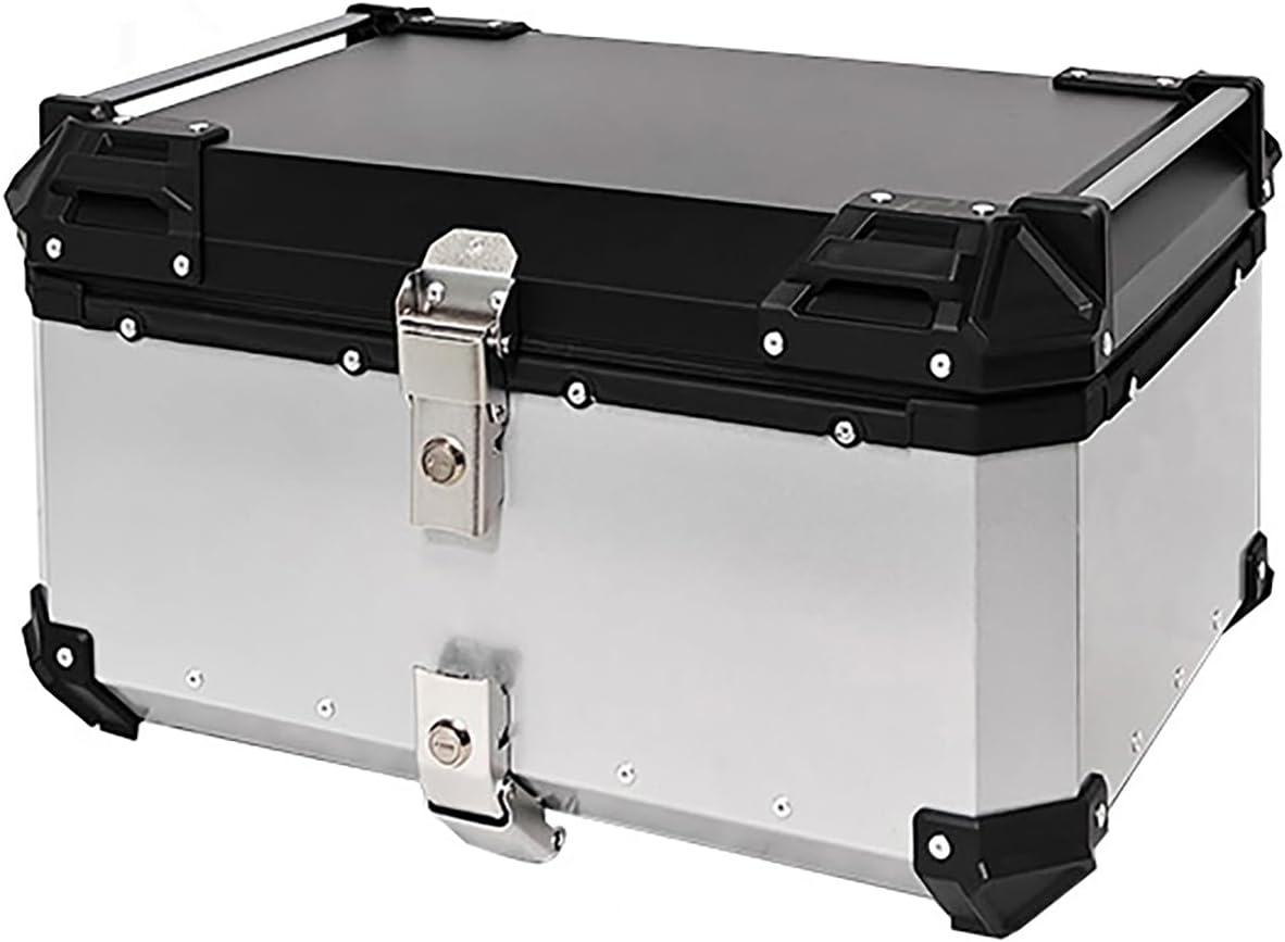 Motorcycle Top Case for Suzuki Address V125SS 2015, Aluminum Alloy Motorcycle Tail Box, Motorbike Tail Box Trunk Tour Storage Carrier Case with Leather Lining,65L-Silver