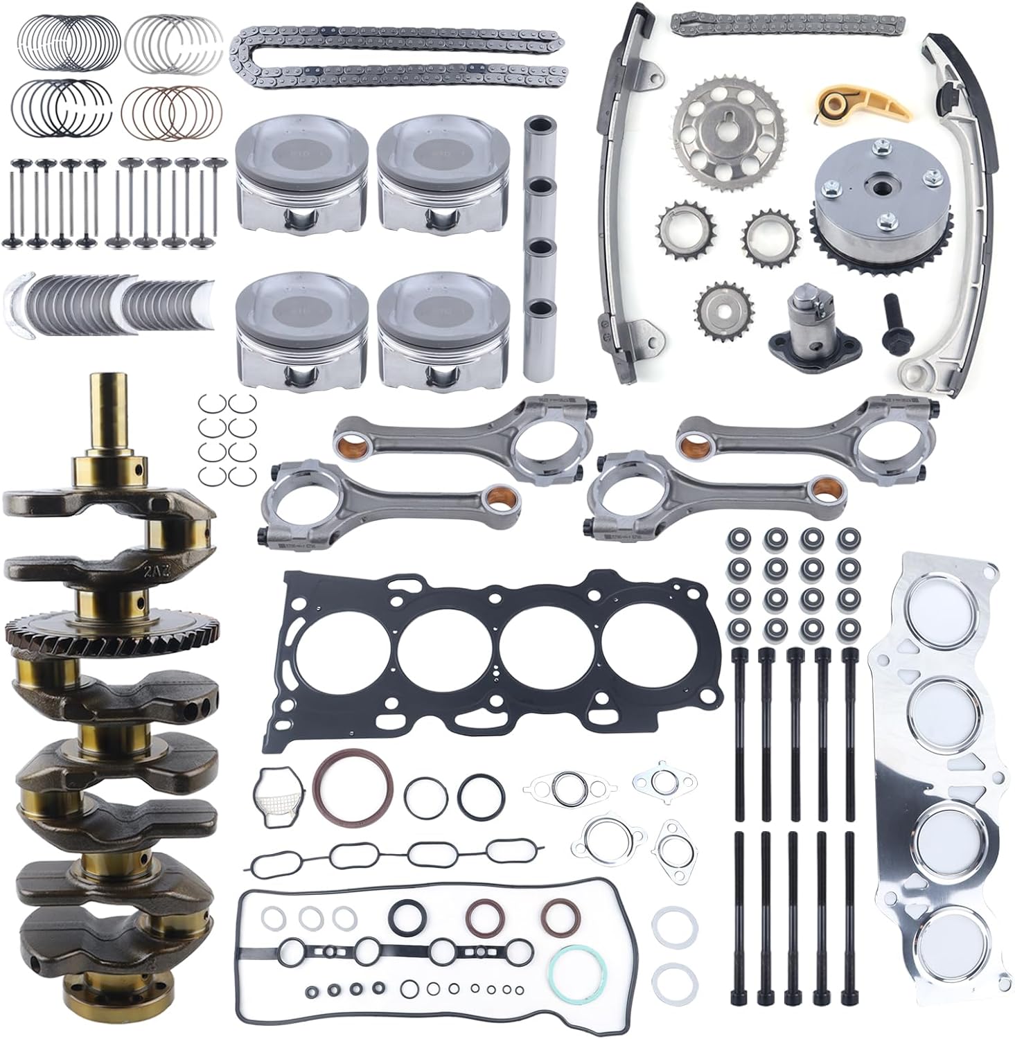 2AZ-FE 2.4L Engine Rebuild Overhaul Kit w/Crankshaft,Timing Chain Kit,Head Gasket Set & Connecting Rod Compatible with Toyota Highlander Camry Rav4 Scion tC xB Replace# 13401-28900 13281-28010