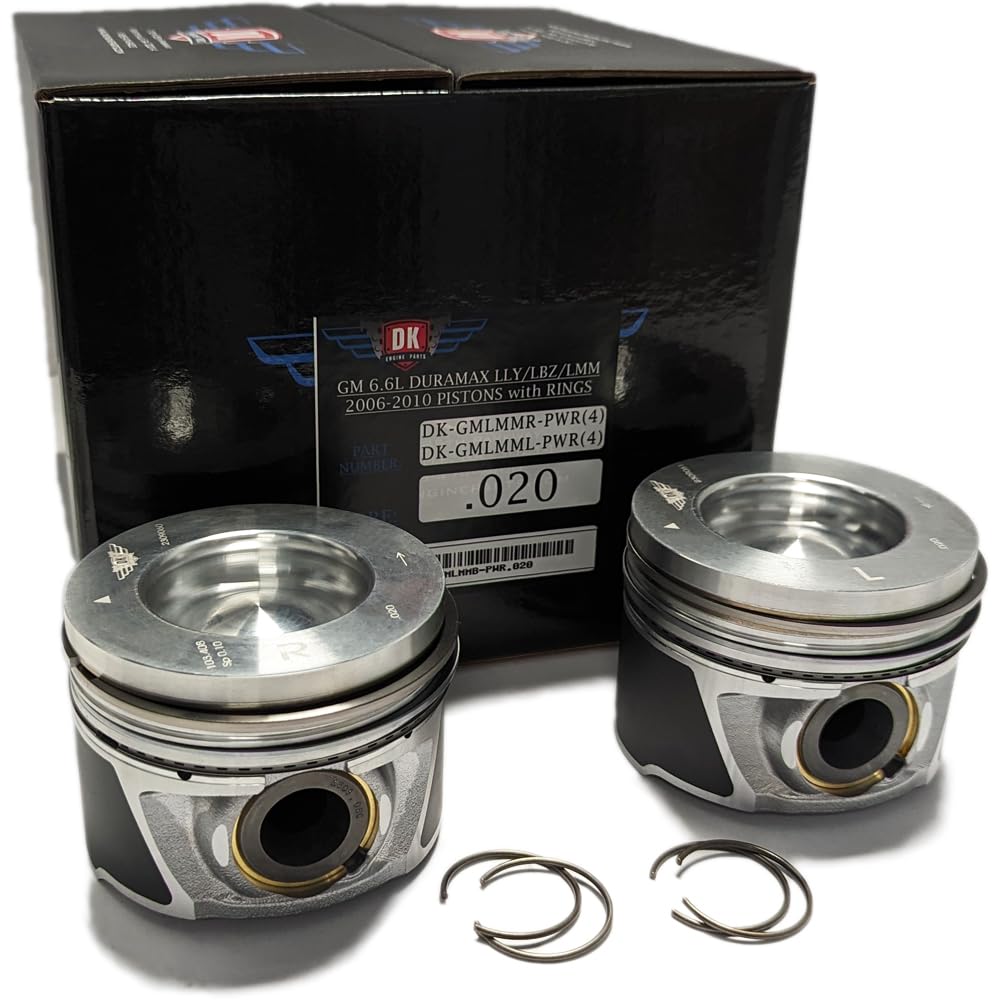New DK Piston Set (8) w/Rings - Fits 6.6L Duramax 2006-2010 LLY/LBZ/LMM (STD)