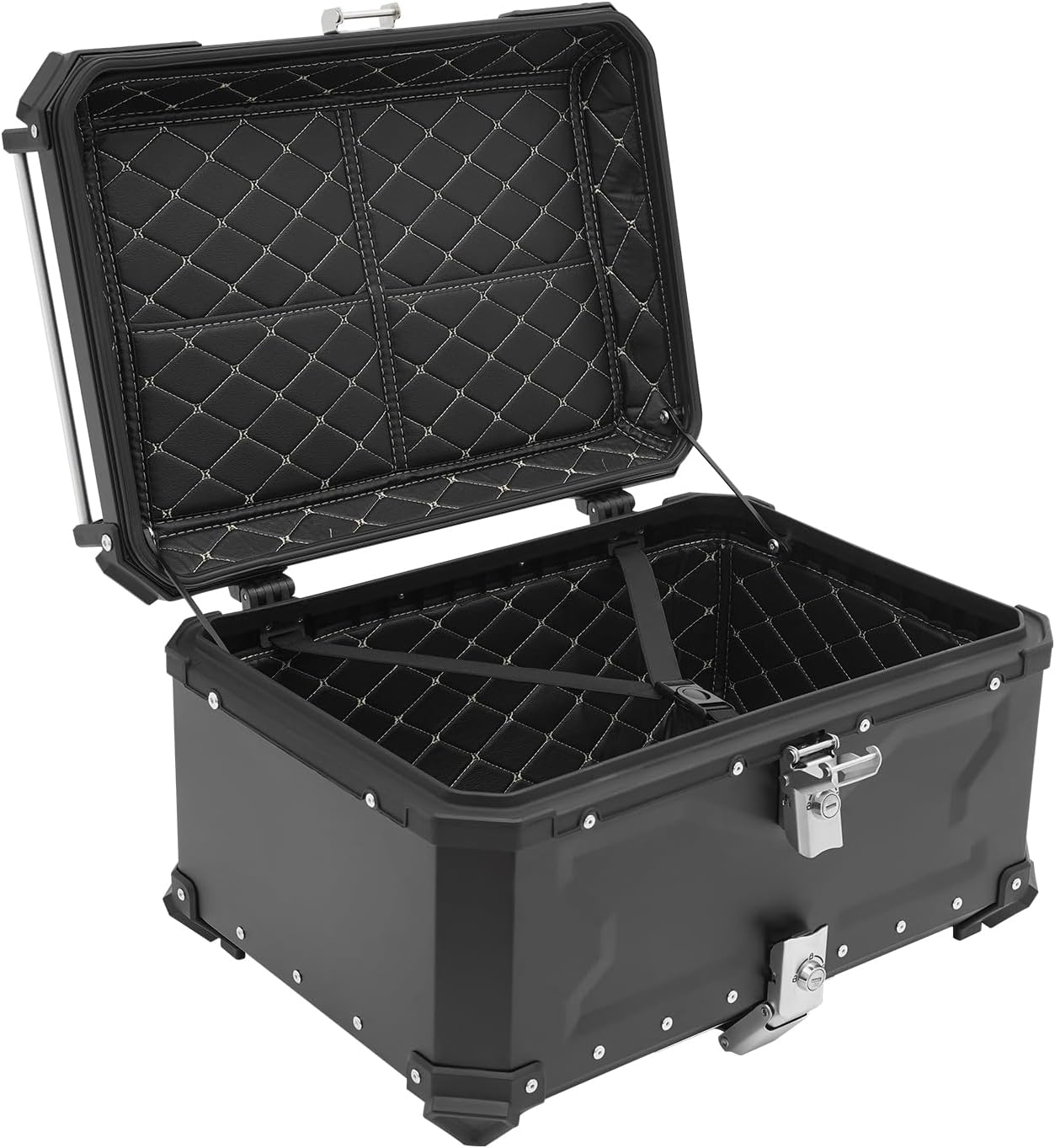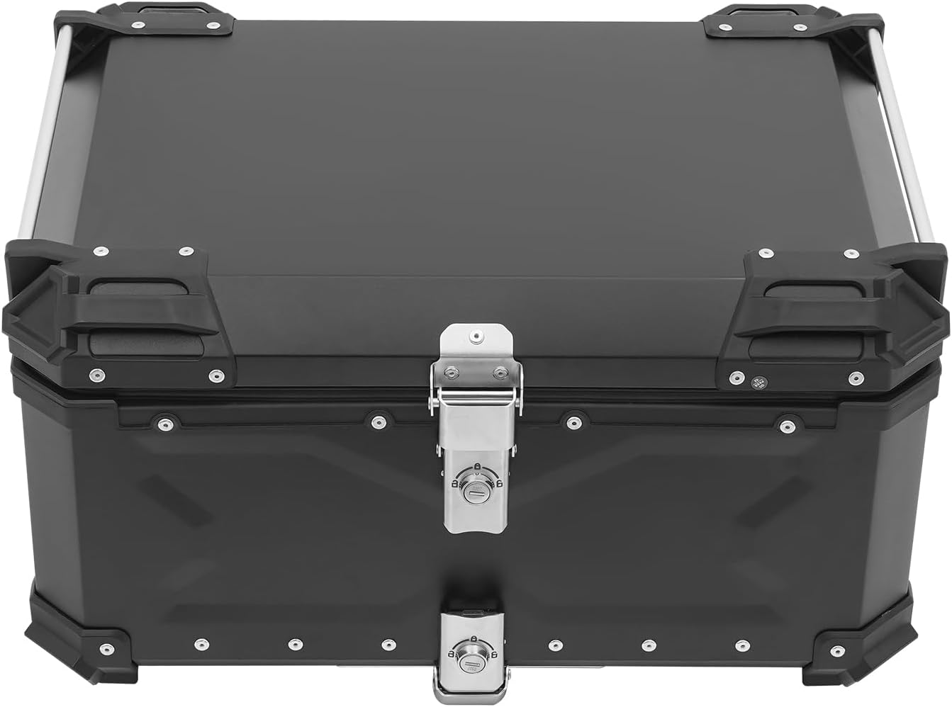 65L Motorcycle Top Case, Universal Motorcycle Trunk Aluminum Trunk Tour Tail Box Waterproof Motorbike Storage Carrier Case with Fixing Strap 2 Keys for Storing Helmet Luggage