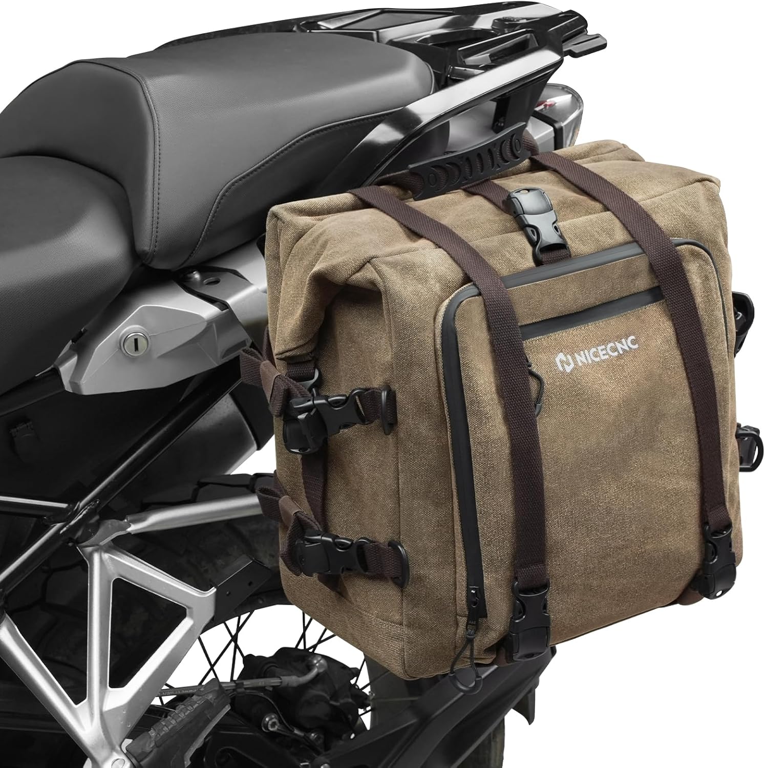 NICECNC Cotton Canvas Motorcycle Saddlebags - 30L Pannier Tail Luggage Pack With Bag Rain Cover, Adjustable Dividers, Reflective Strip for Rear Luggage Rack Compatible with Various Motorcycle Models
