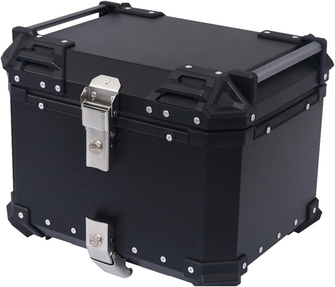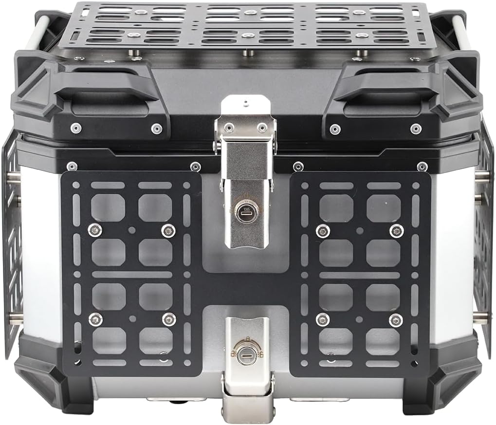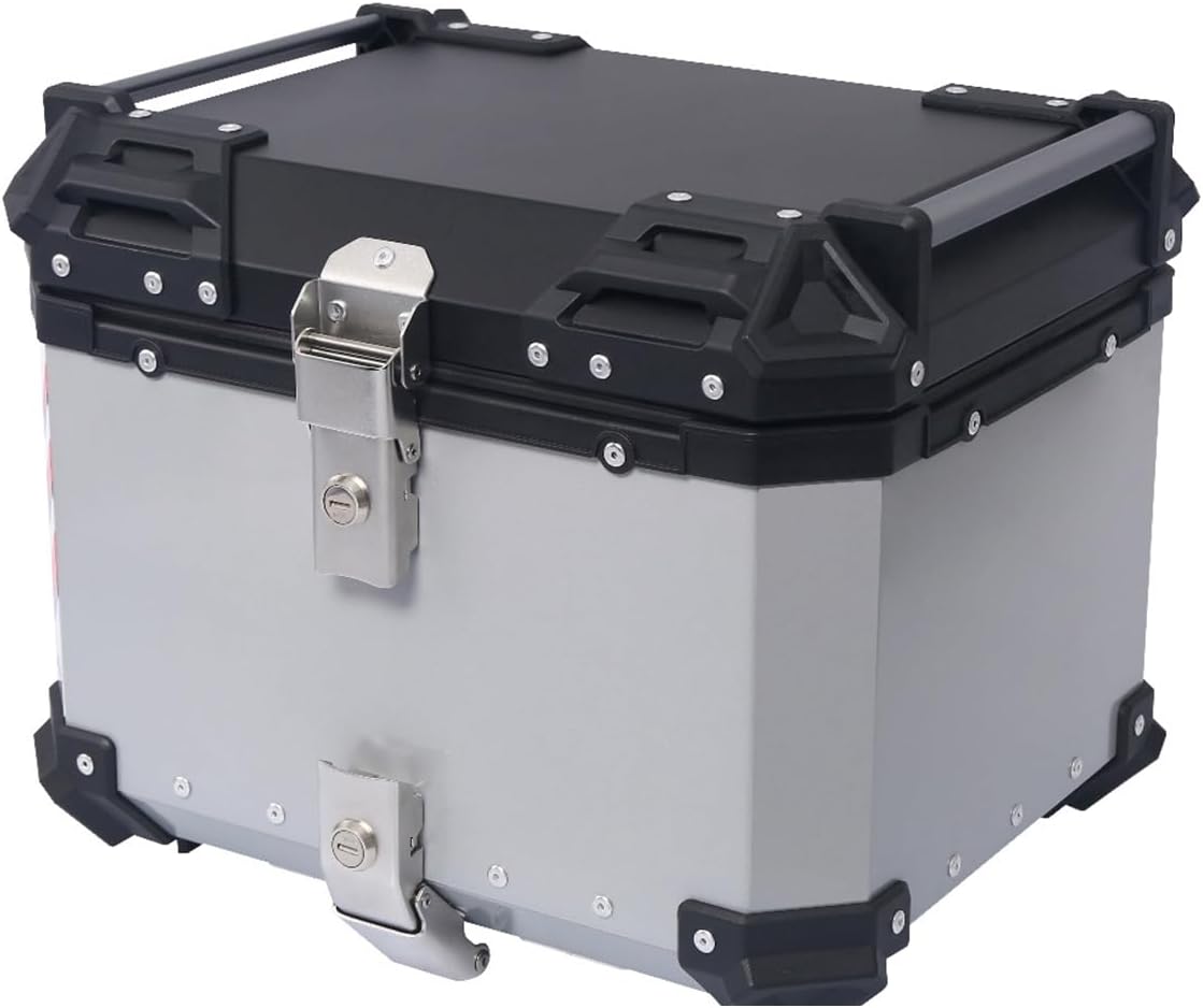 Motorcycle Top Shell Universal Aluminum Motorcycle Tailbox with Leather Lining 45L Mount Protection Waterproof Trunk Travel Bag with Lock, Black Silver