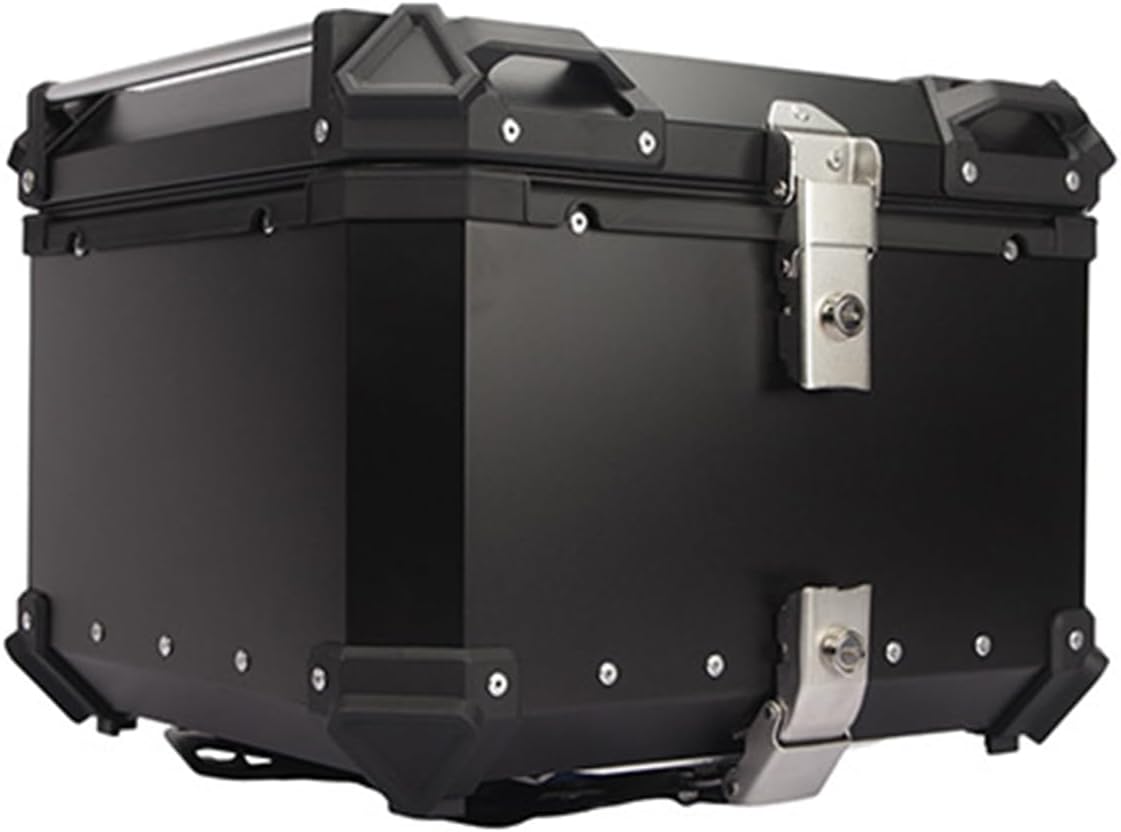 45L Motorcycle Top Case, Aluminum Motorbike Scooter Storage Tail Trunk with Reflective Stickers & Mounting Hardware, for Helmet/Luggage Storage,Black,45L