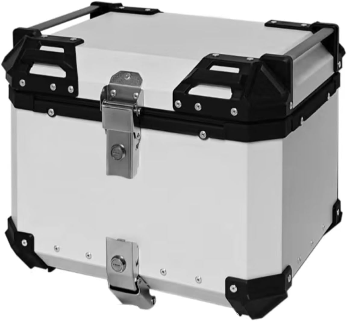 Universal Aluminum Alloy Motorcycle Trunk Box, 45L Waterproof Motorcycle Top Case with Security Lock, Suitable for Stowing Helmets and Luggage,Silver