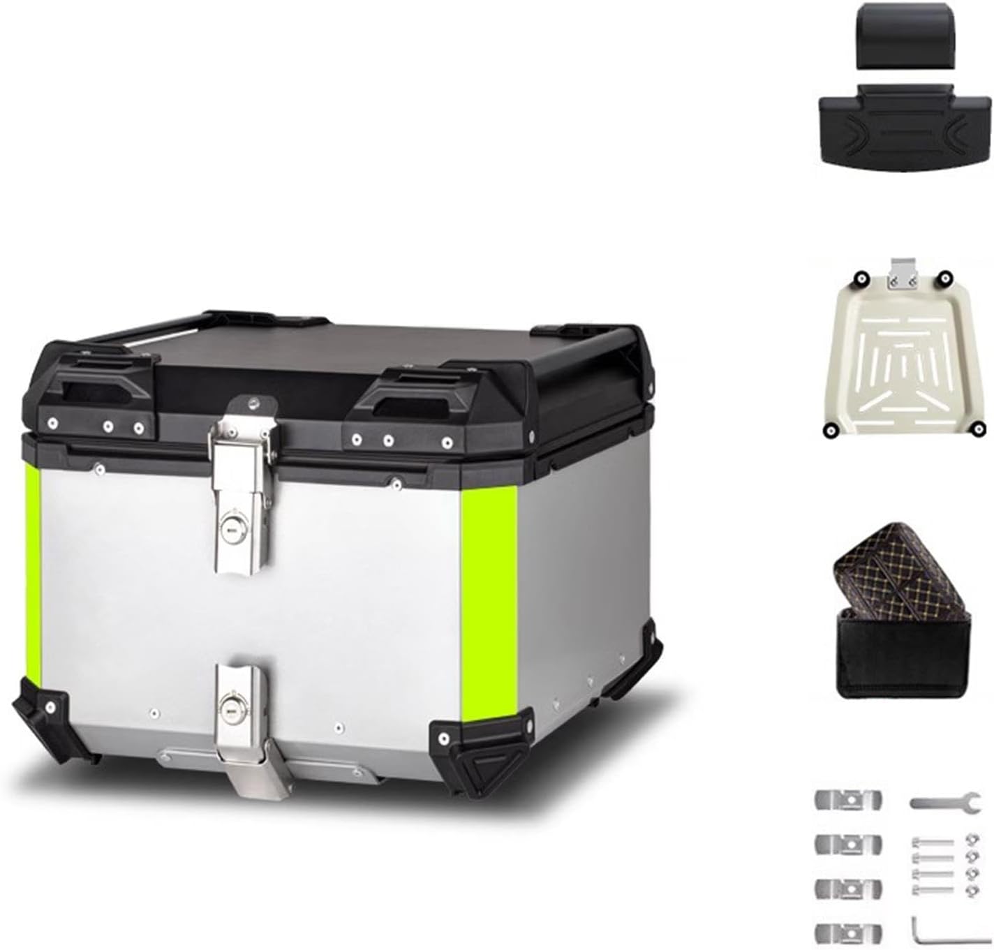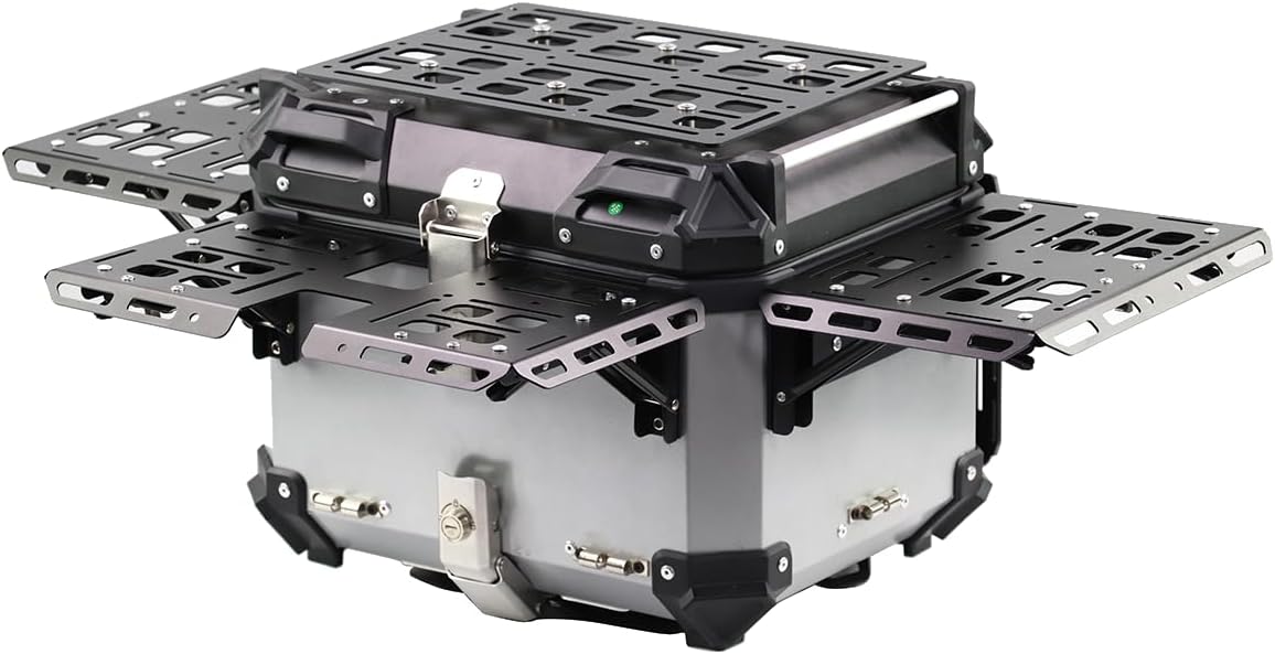 Motorcycle Top Shell Universal Aluminum Motorcycle Tailbox with Leather Lining 45L Mounting Protection Simple Table Trunk Travel Bag with Lock, Black Silver Three