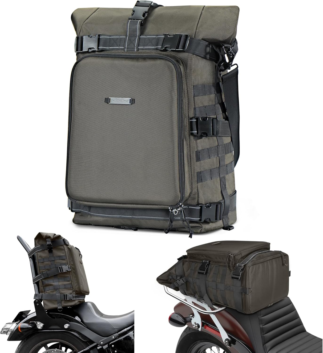 Motorcycle Sissy Bar Bag Tail Backrest Luggage Bag 51L Backpack Duffle Gear for Touring Camping Trip Travel Outdoor with Raincover and 1 Shoulder Strap, Green
