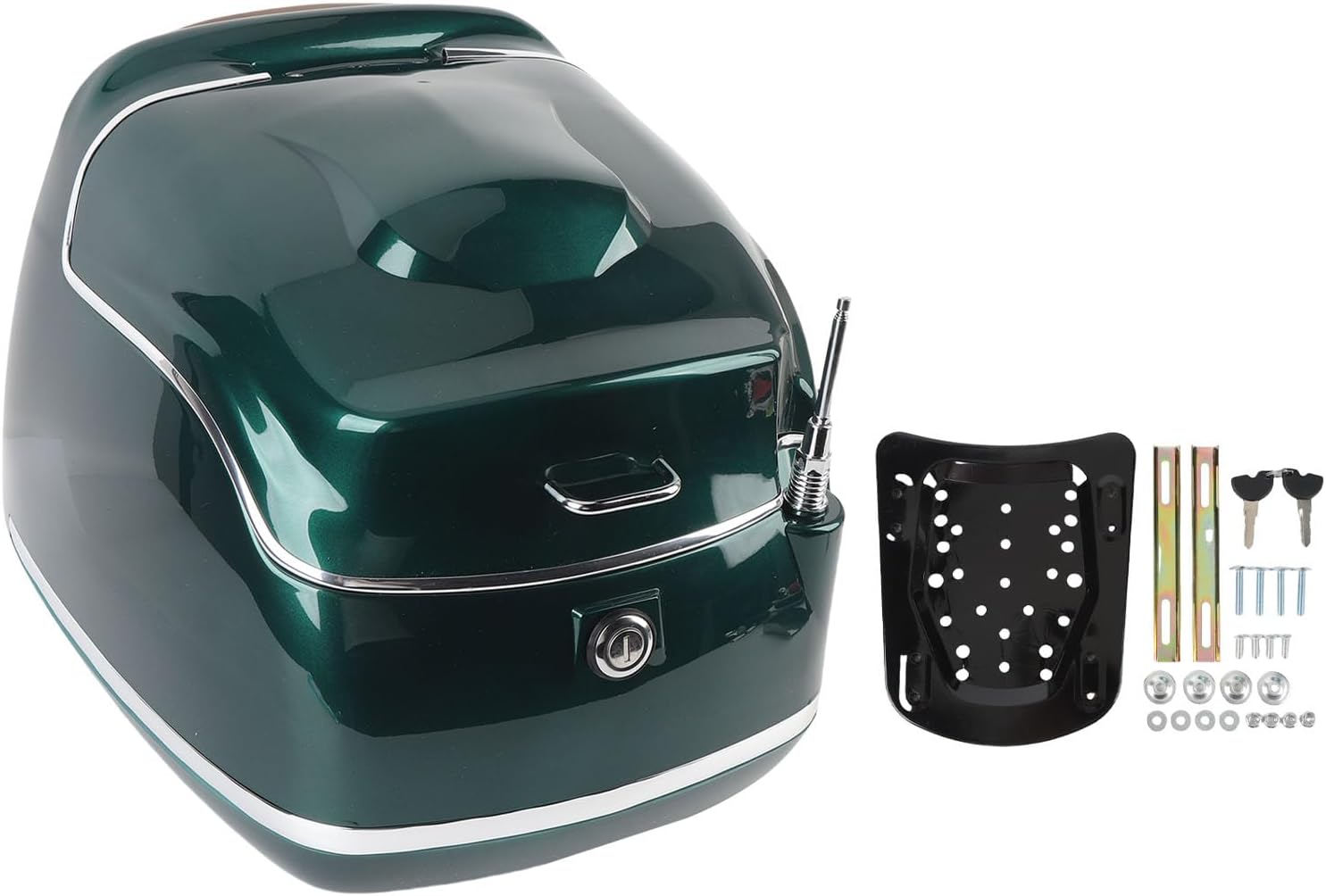 Tyenaza 38L Motorcycle Top Box Waterproofing Universal Fit with Key Lock Base Plate Motorcycle Luggage Trunk Tail Storage Carrier Case for Helmet Gloves (Dark Green)