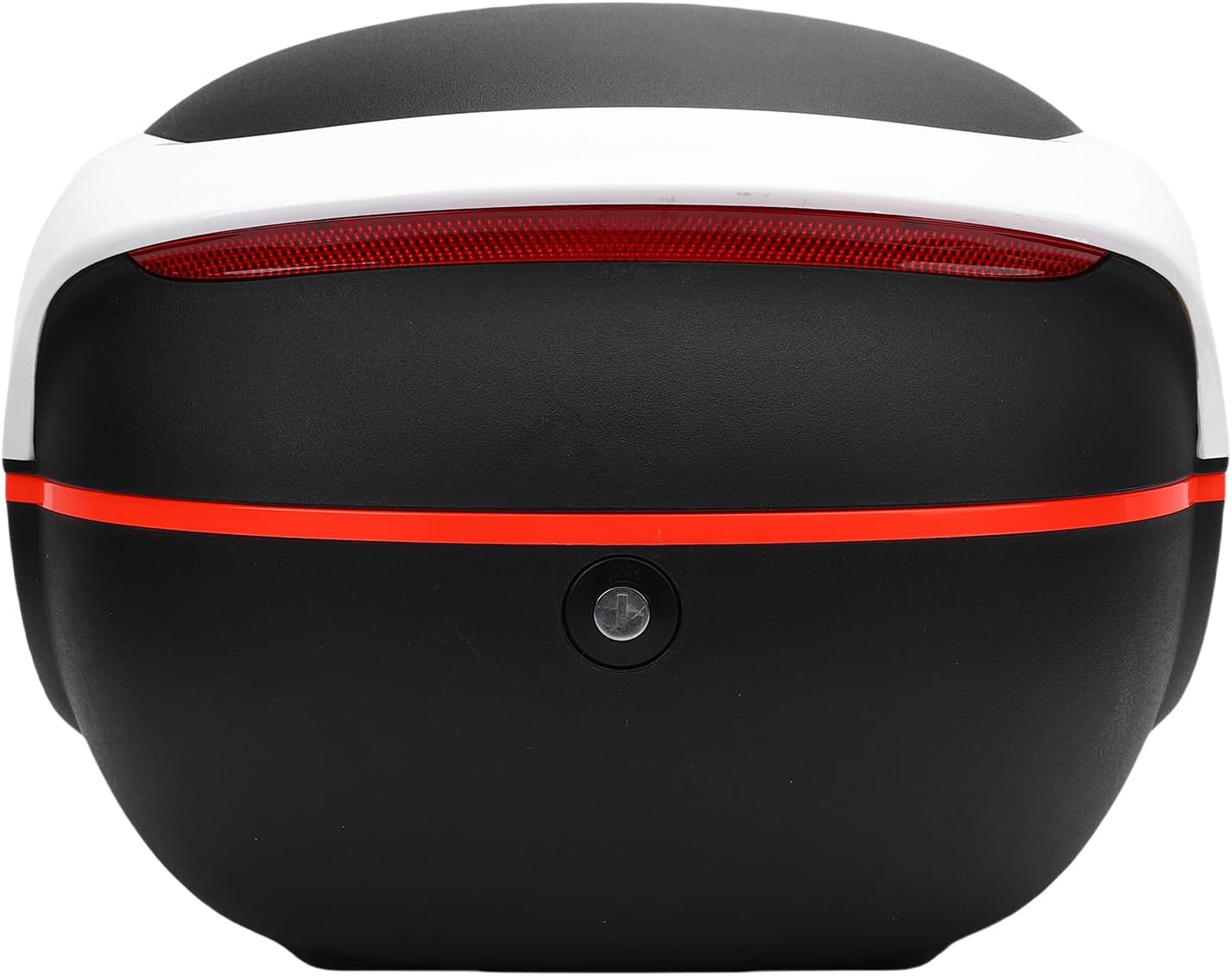 Sorandy 32L Capacity Trunk, Water Proof Trunk Luggage Plastic Case Replacement with Removable Washable Lining, Anti Theft Lock System, Reflective Strips for Motorcycles (White)