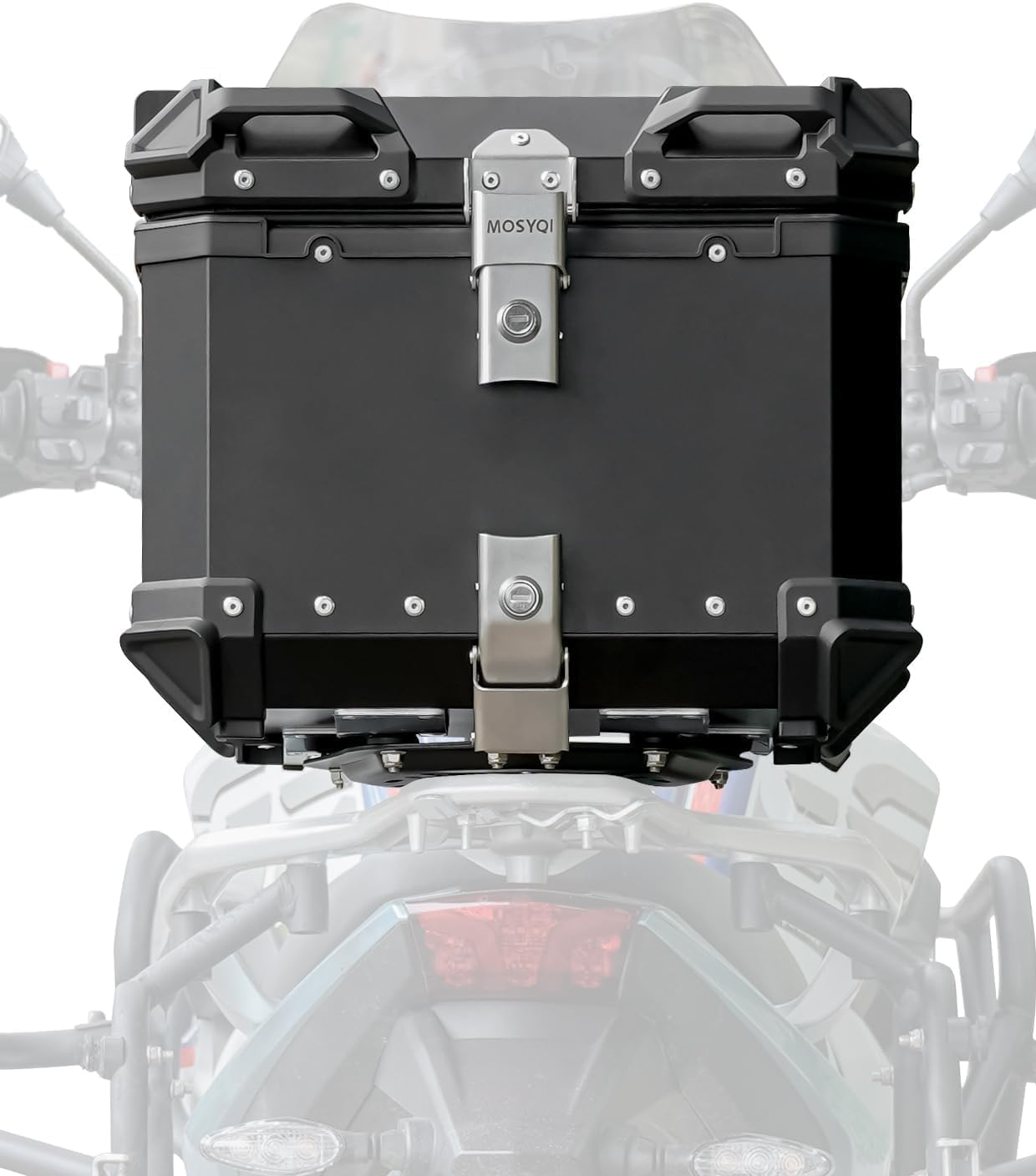 Motorcycle Top Case 45L, Motorcycle Trunk Top Case Box Store Helmet Luggage Top Bag Storage Carrier, Waterproof Aluminum Handle Tail Box with Security Lock