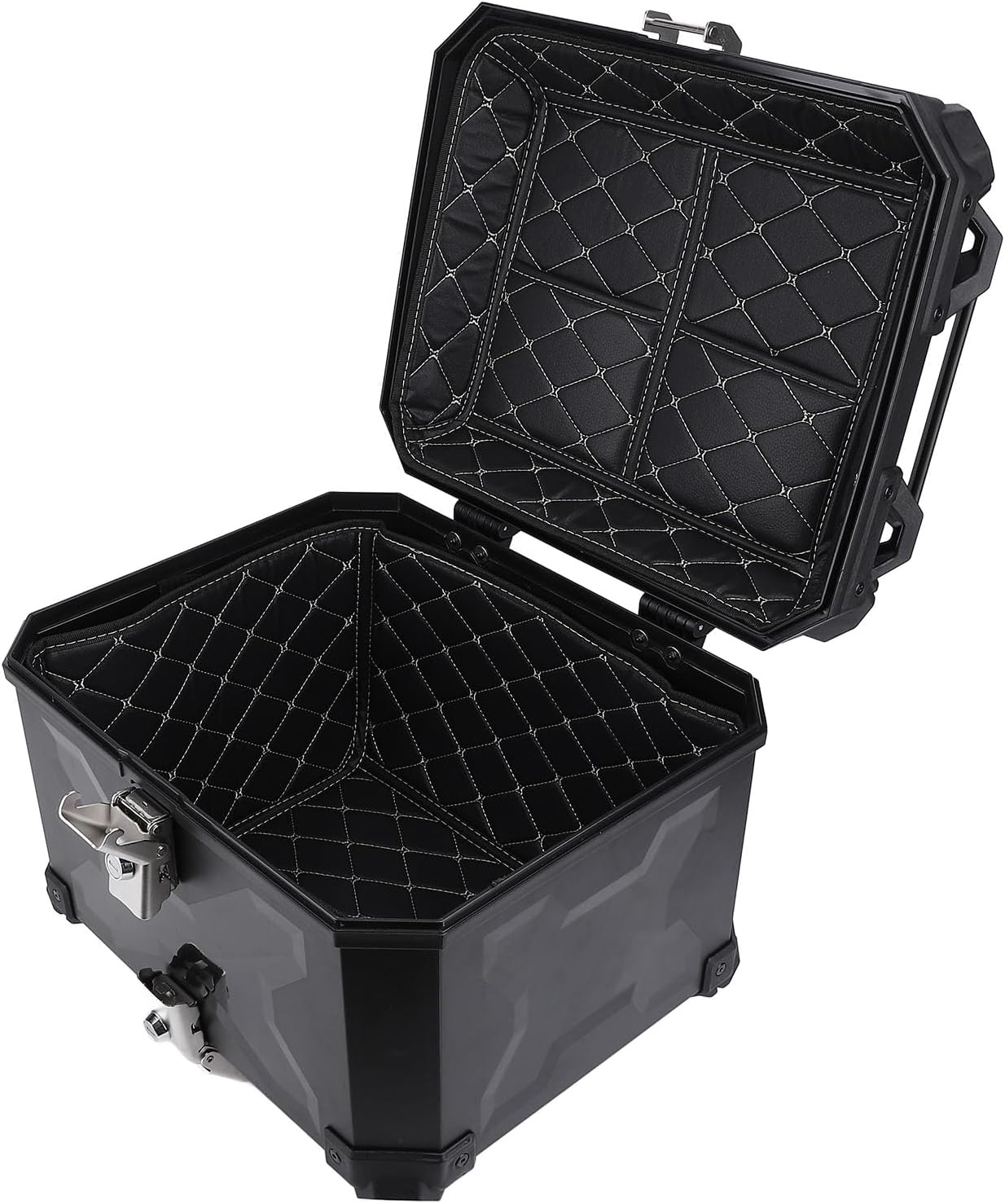 Aluminum Motorcycle Trunk Box, Universal 65L Waterproof Top Case with Security Lock for Helmet Luggage (Black)