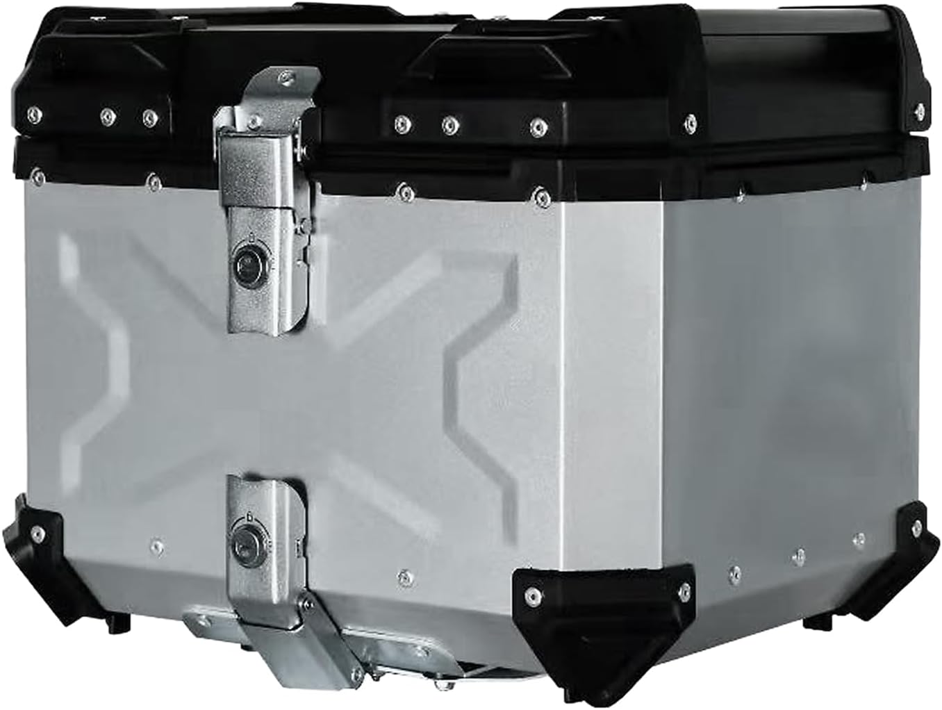 Top Case, Aluminum Alloy Tail Box with Dual Lock and Leather Lining, for Helmets Riding Gear Storage 16.54x14.57x12.99in (55L)