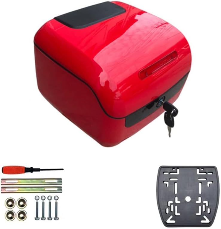 Motorcycle Tour Tail Box Trunk Universal Motorcycle Scooter Top Box Tail Trunk Luggage Box, Storage Carrier Plastic Case for Motorbike Moped Back Rear Case (Color : Red)