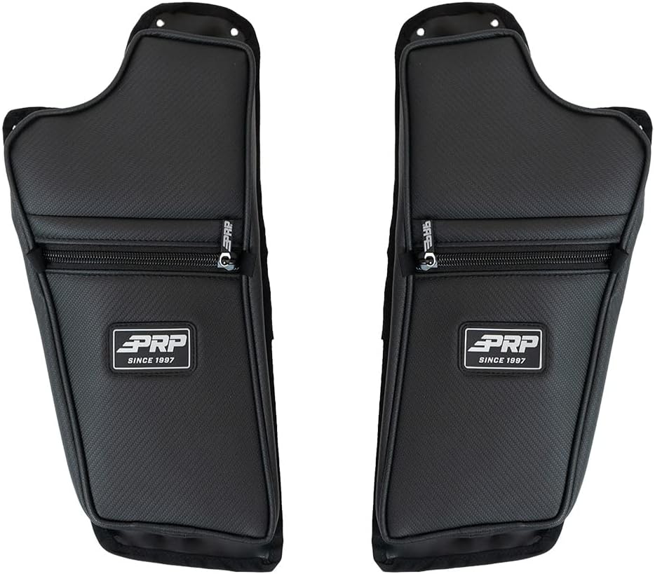 PRP Seats Front Lower Door Bags with Knee Pad for 2016+ Polaris General - Heavy-Duty & Secure UTV Storage for Gear, Phones, Tools – Water-Resistant, Puncture-Proof + Knee Protection (Black; Pair)