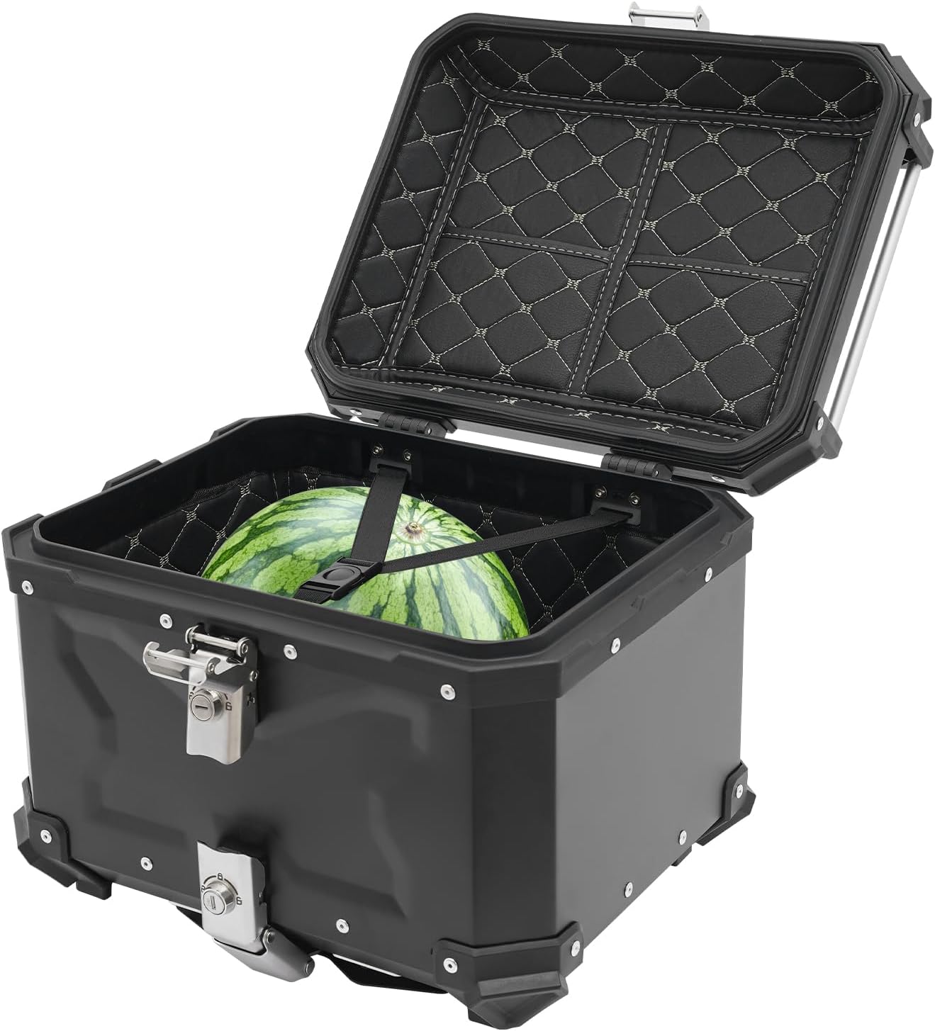 Motorcycle Top Case, 45L Aluminum Alloy Motorbike Tail Box with Leather Lining & Security Lock, Waterproof Detachable Motorcycle Tops Boxes for Luggage Helmet Tools