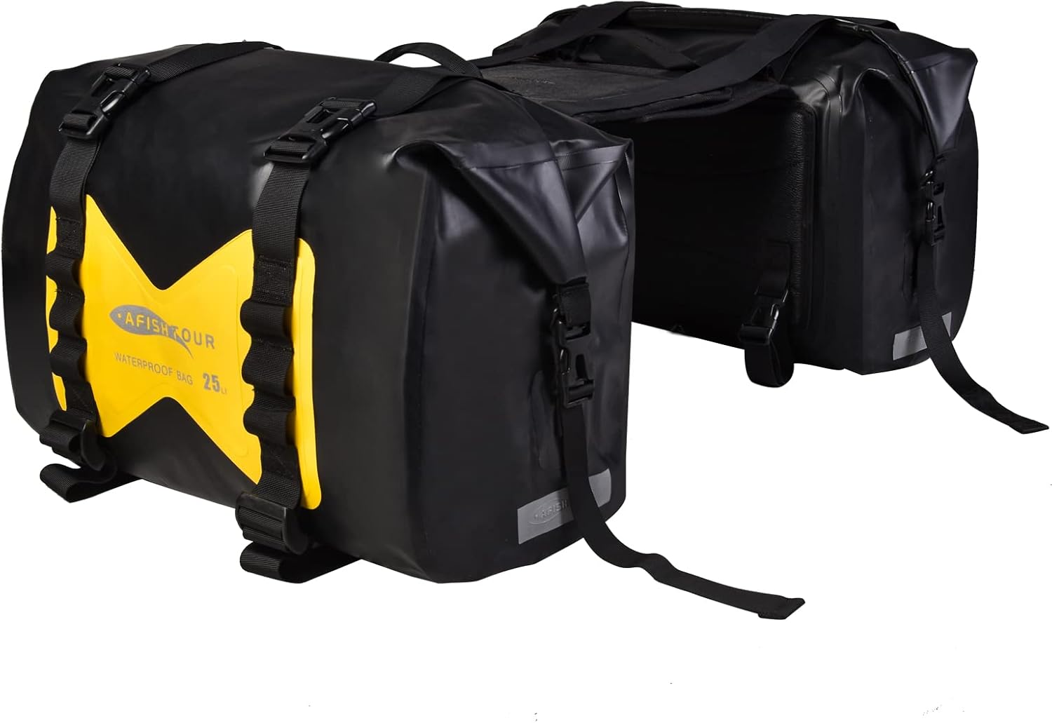 Waterproof Motorcycle Saddlebags - 50L Motorcycle Luggage Bags for Motorbike Travel - Detachable Panniers - Scooter, Honda, Suzuki, Yamaha (Yellow, 2 Pack)