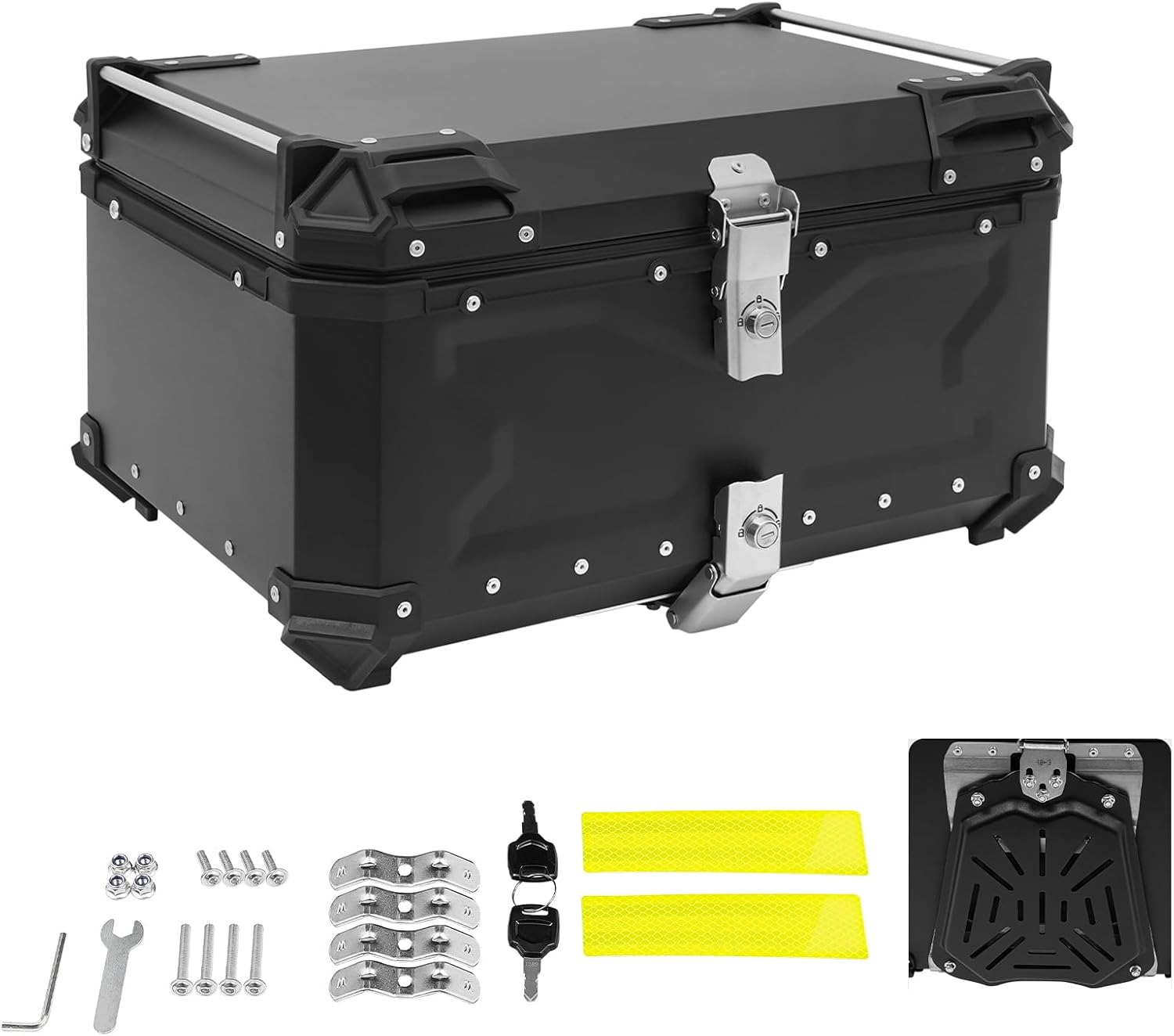 Motorcycle Top Case | Aluminum Alloy Motorcycle Trunk with Security Lock | Universal Motorbike Tail Box | Trunk Tour Storage Carrier Case for Travel Riding | Black (17.17Gal/65L)