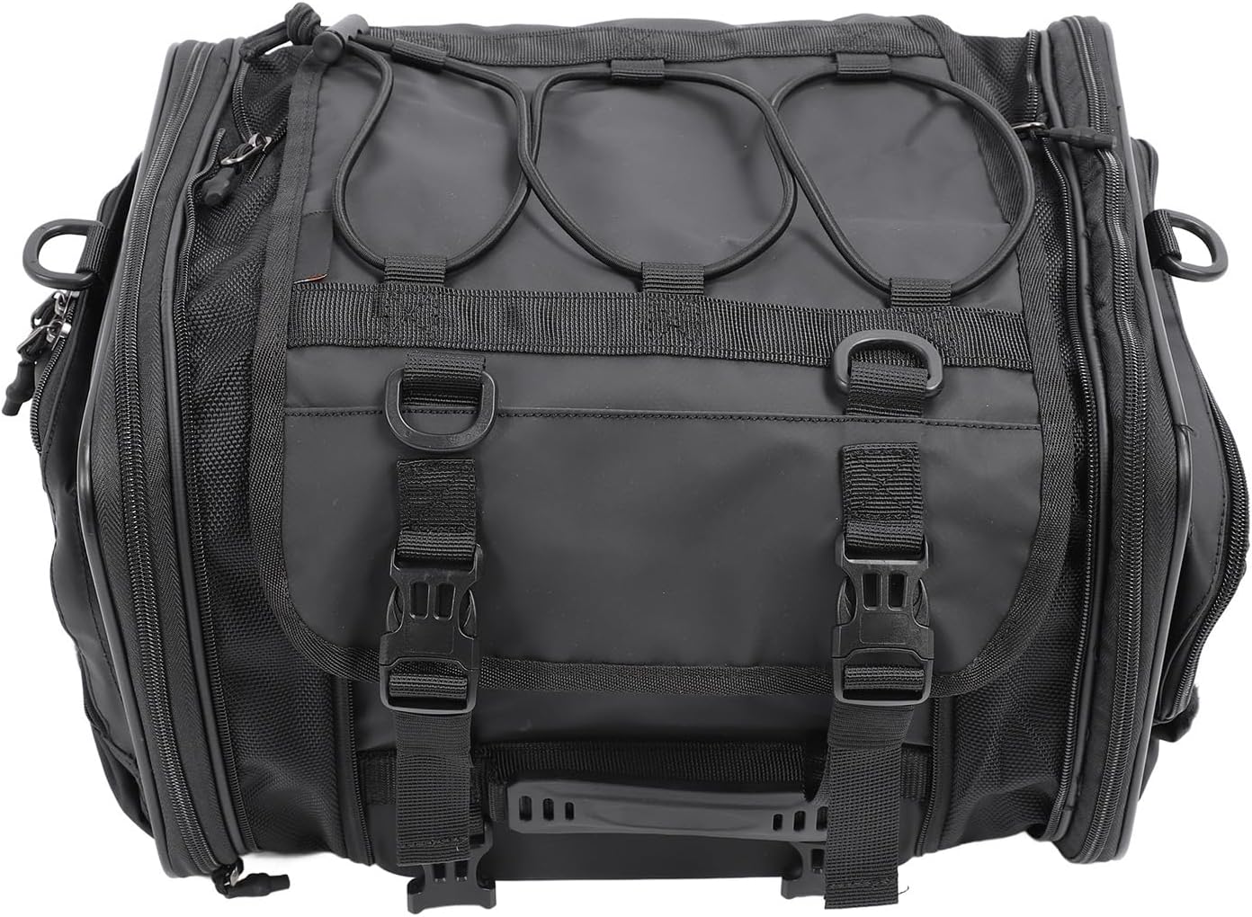 Motorcycle Pannier Bag, Motorcycle Tail Bag Polyester 19L‑26L Elastic Strap Travel Luggage Bag with Rain Cover Shoulder Strap for Street Bike Scooter