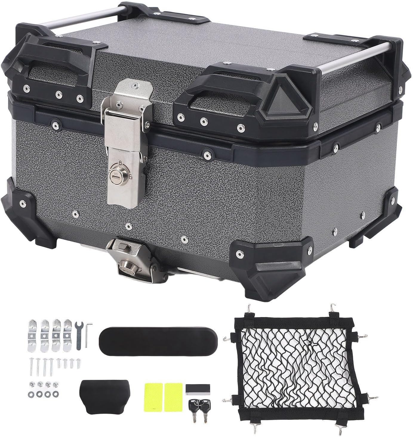 GOTOTOP Motorcycles Trunk Box 32L, Rear Tail Box Helmet Bags Storage Carrier with lock and Mounting Accessories for Motorbikes Scooters (Grey)