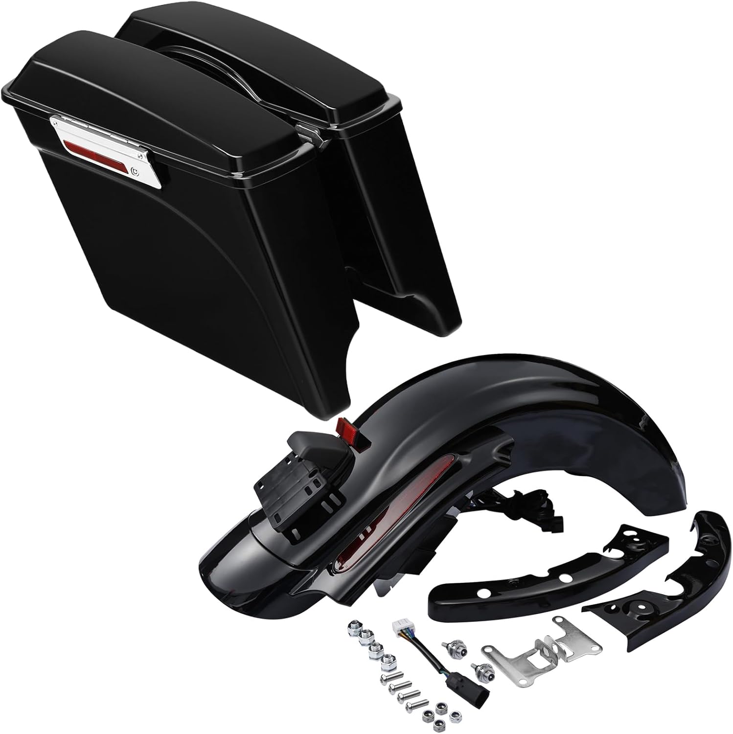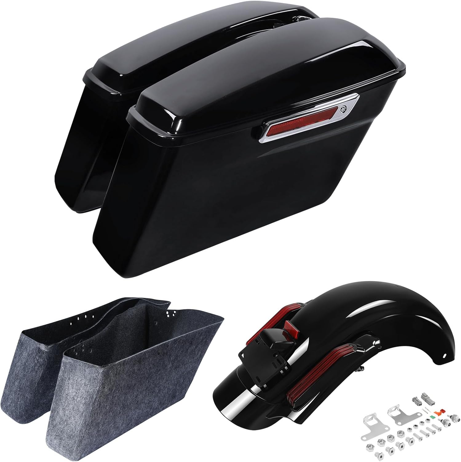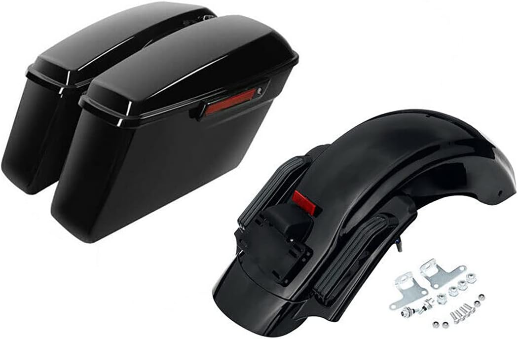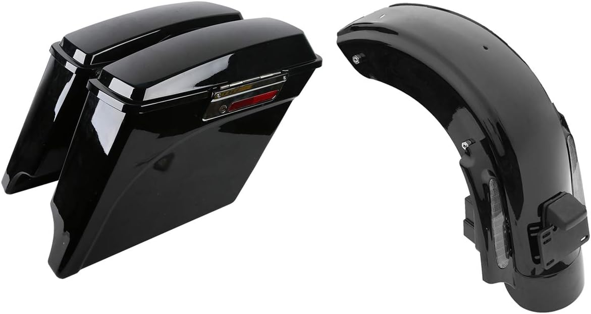 5" Stretched Extended Saddlebags and Rear Fender System Fit for 2009-2013 Harley Touring Models FLT FLHT FLHTCU FLHRC Road King Road Glide Street Glide Electra Glide Ultra-Classic Vivid Black