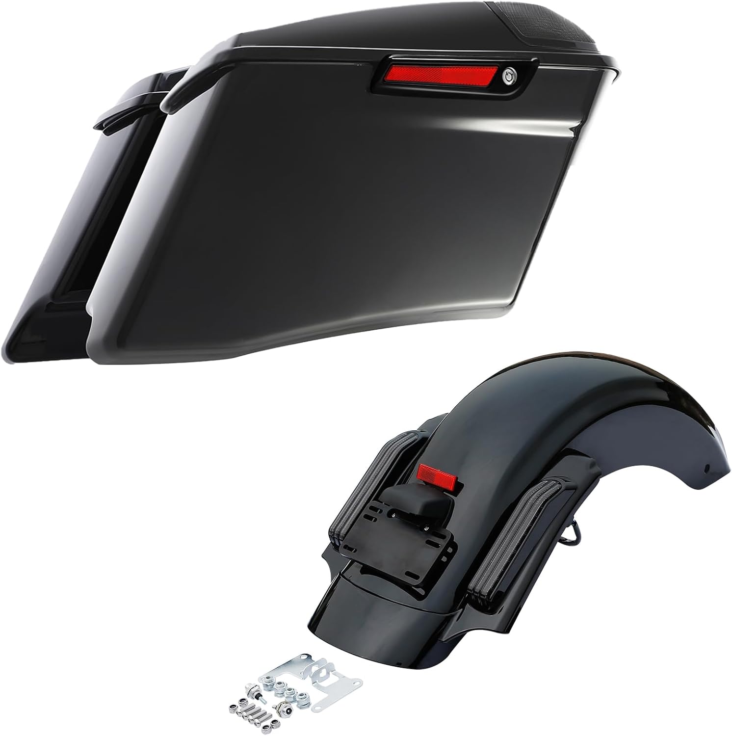 TCMT 4" Stretched Saddlebags & Red Len LED Rear Fender Fit For Harley 2014-2024 Electra Glide Street Glide Ultra Limited