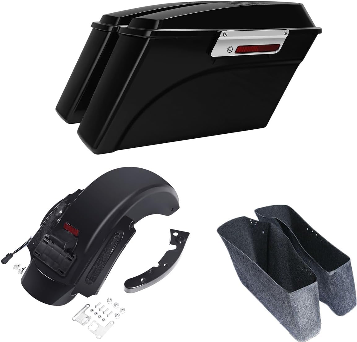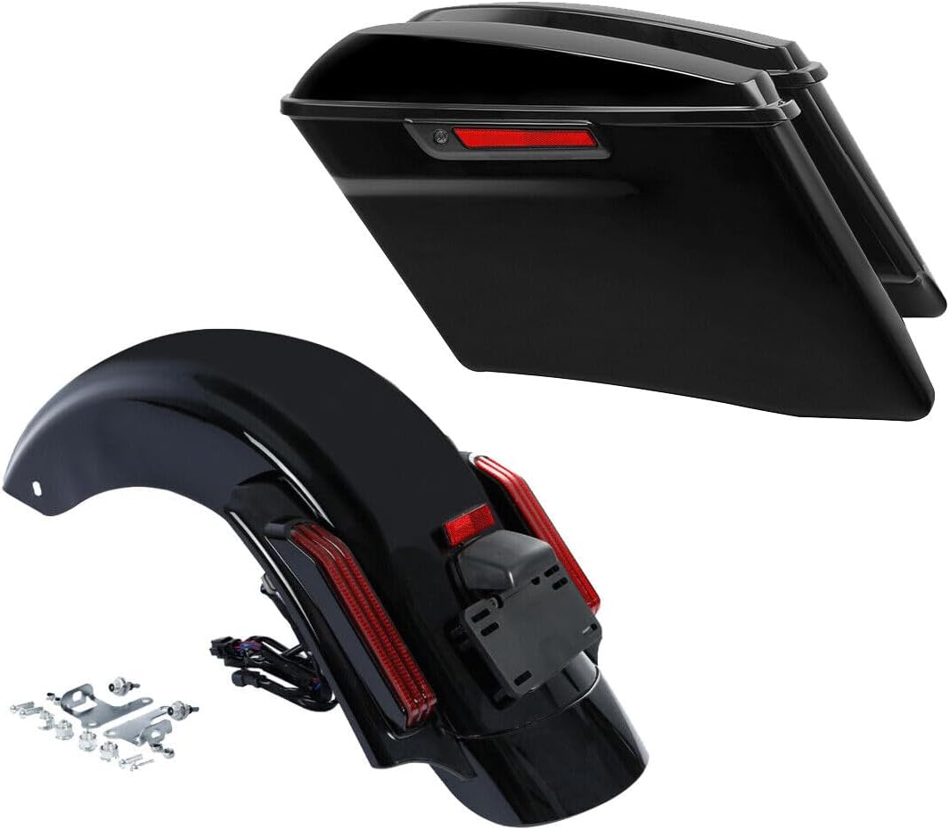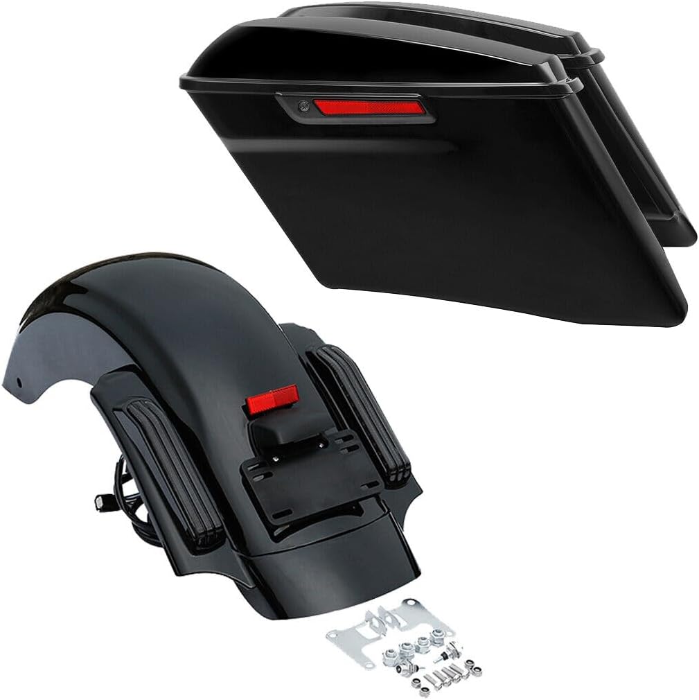 TCMT 4" Stretched Saddlebags & Smoke Len LED Rear Fender Fit For Harley 2014-2024 Electra Glide Street Glide Ultra Limited