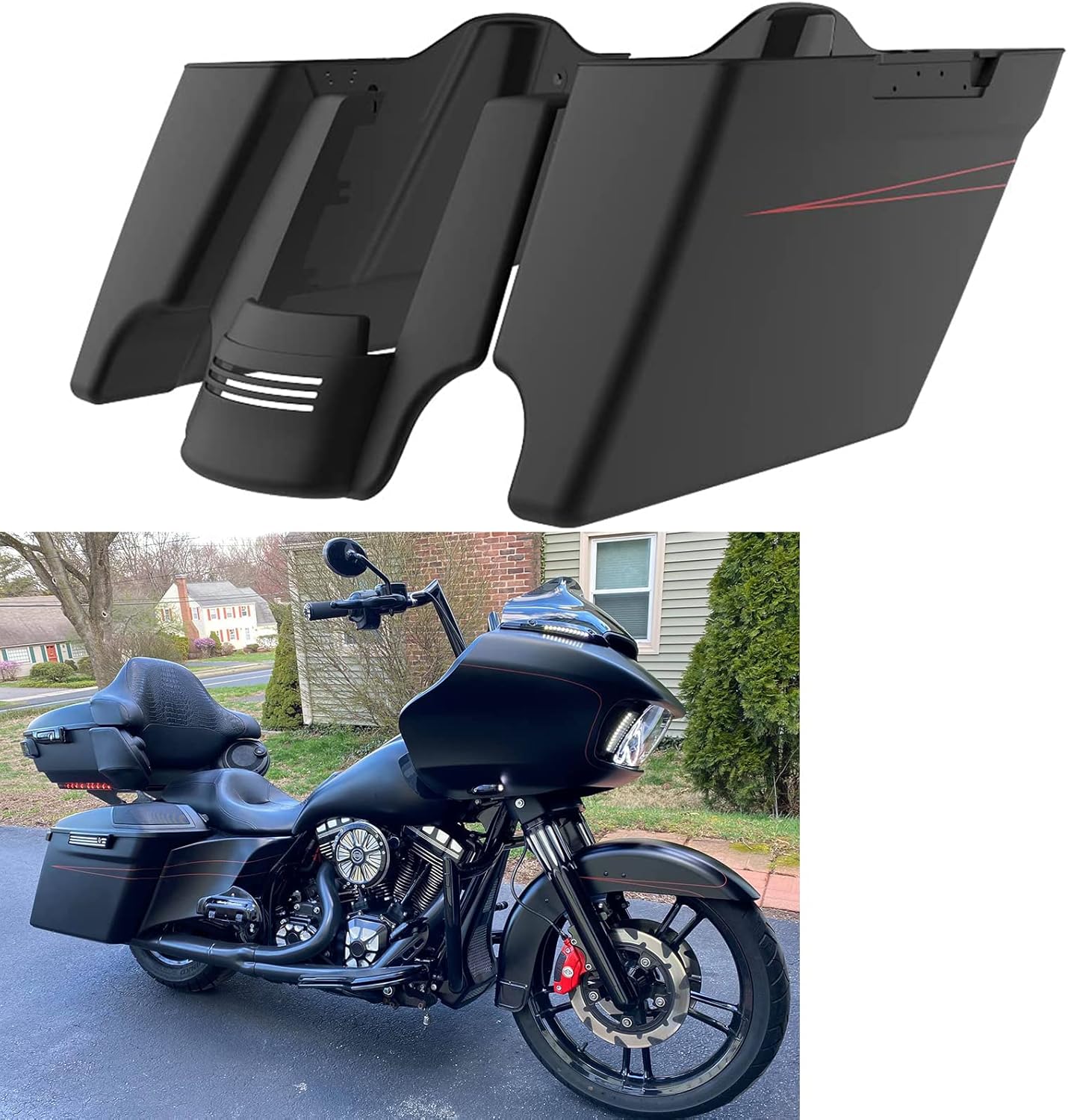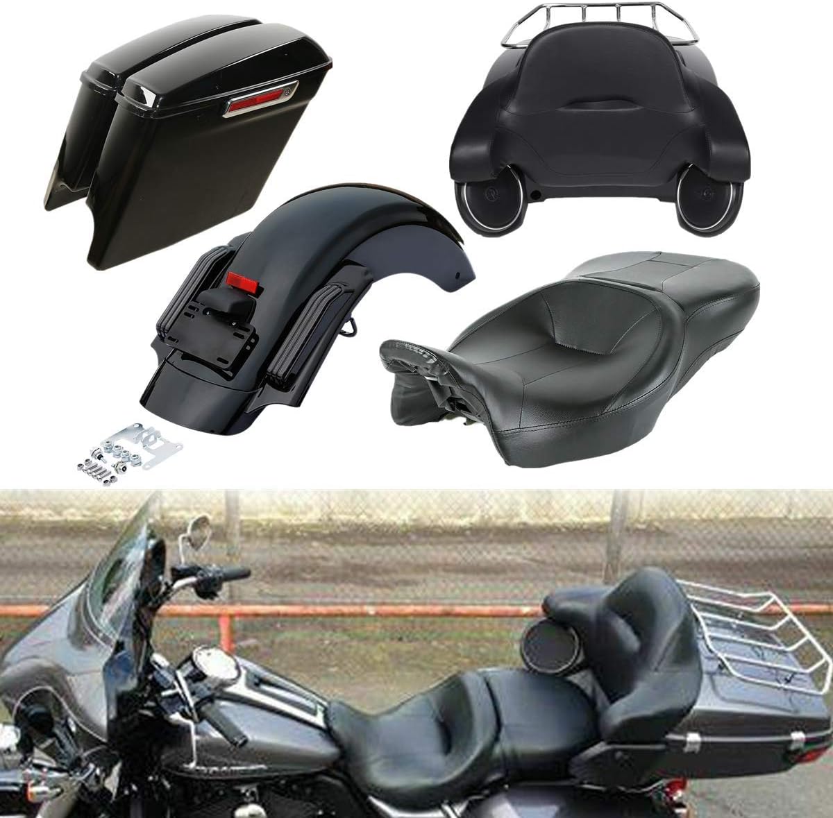 Harley Saddlebags, Stretched Saddlebags, Rear Fender Extension, Saddlebag Lids, Saddlebag Latches Covers, Saddlebag Locks Kits Fit for Harley Touring Street Glide, Road Glide 2014-Later Vivid Black