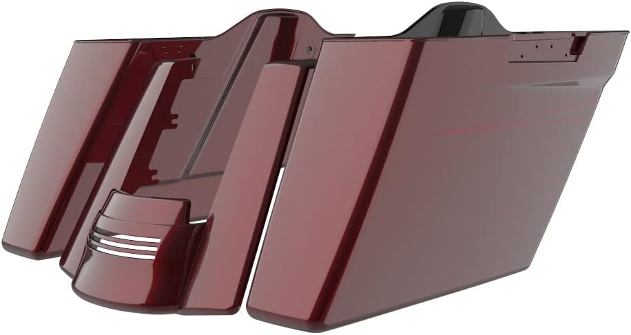 Moto Onfire 4.5" No Cutout Stretched Saddlebags and Fender Extension Fit Harley Touring Road Street Glide 2014 2015 2016 2017 2018 2019 2020 (Mysterious Red Sunglo with Burgundy Outer Pinstripe)