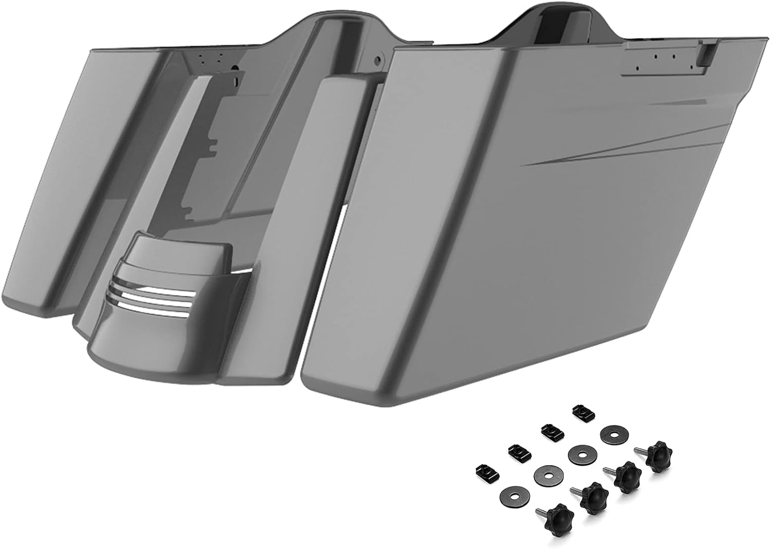 Moto Onfire Extended Saddlebags Fit for Harley Davidson H-D Touring 2014-2023, Charcoal Pearl with Black Pinstripe, Dual Uncut, Rear Fender Extension