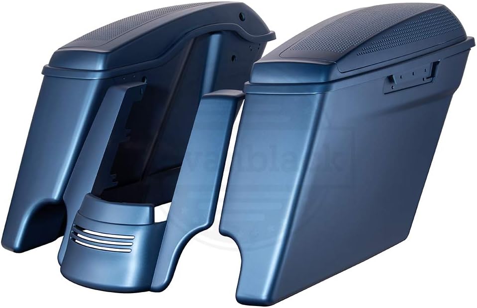 Motorcycle Stretched Saddlebags Fit for 2014+ Harley Touring - Legend Blue Denim, 6x9 Speaker Lids, Rear Fender Extension