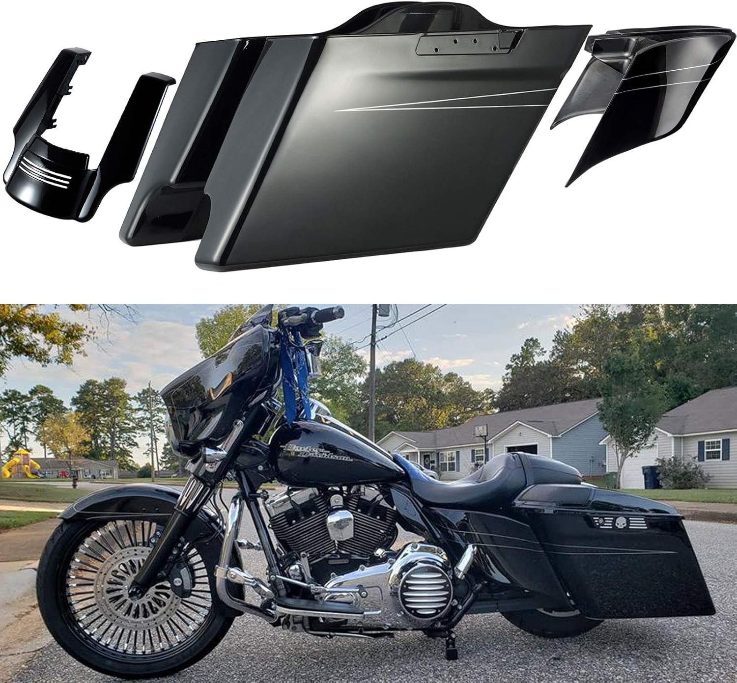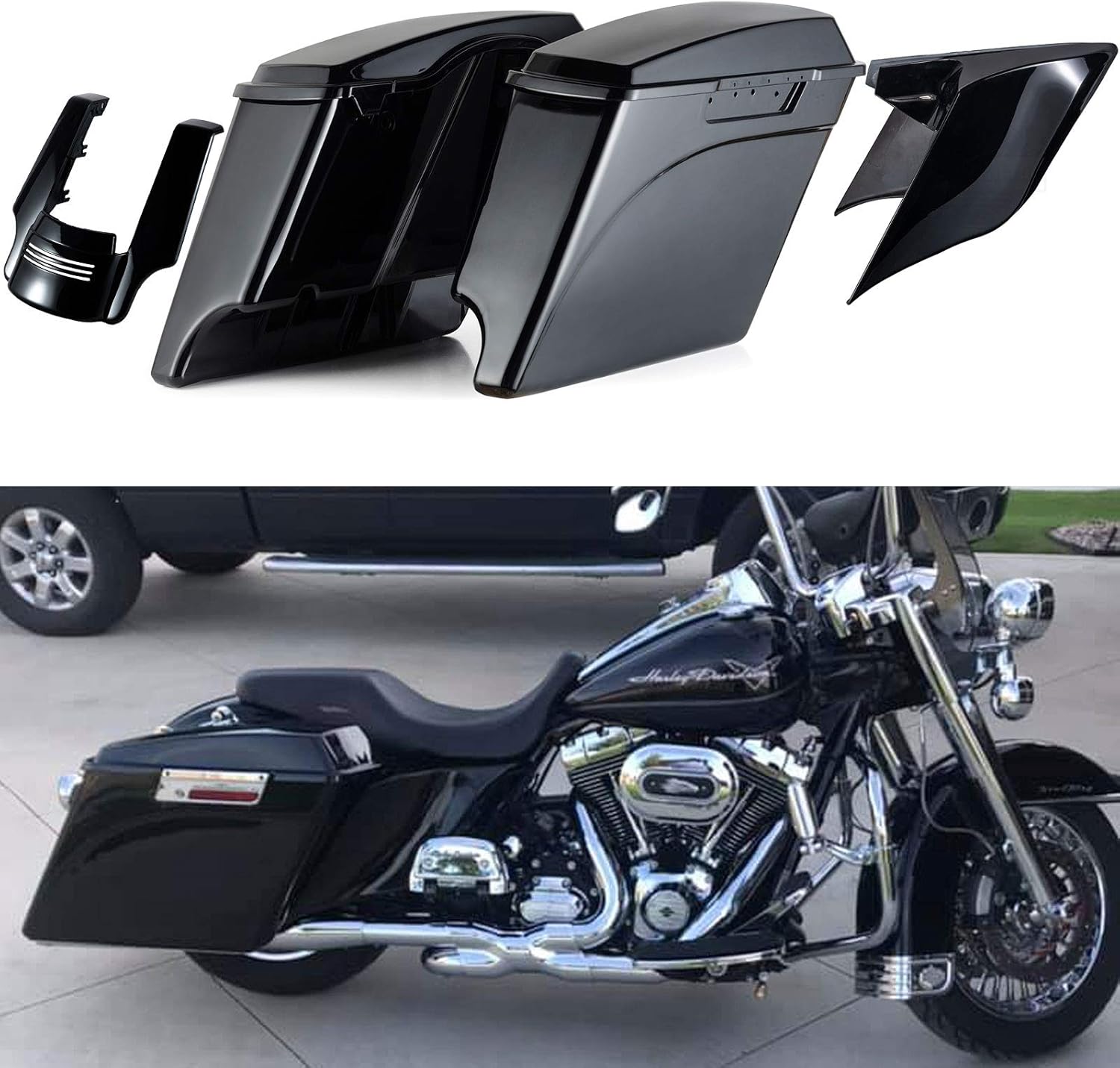 Motorcycle Stretched Saddlebags Fit for 2014+ Harley Touring - Vivid/Glossy Black, 4.5", Side Covers, Rear Fender Extension