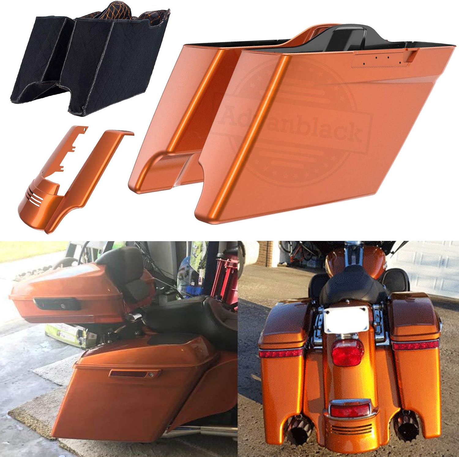 Moto Onfire Stretched Saddlebags, Amber Whiskey, Orange Liners, Rear Fender Extension, 4.5" Extended Bags Fit for Harley Touring, Road Glide, Street Glide, 2014+