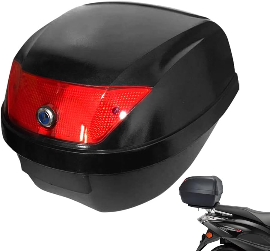 Motorcycle Storage Box, Universal Motorcycle Top Box Waterproof Backpack for Travel Storage Carrier Case with Backrest Motorbike Moped Back Rear Case (Black 37x37x31cm)