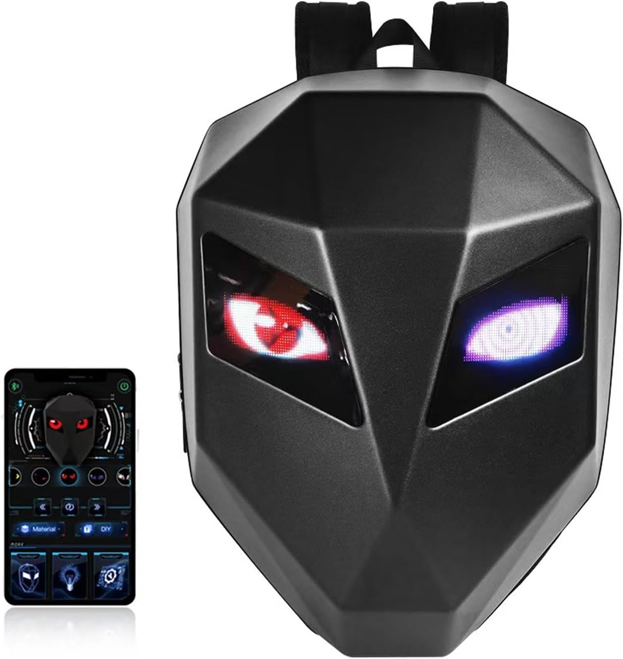 Motorcycle Backpack with LED Display, Programmable Large Capacity Helmet Storage Bag for LOY Eyes APP, Smart Hard Backpack for Traveling, Hiking, Riding