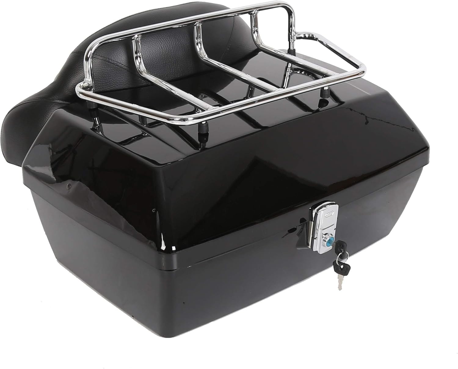 EGO Bike Black Motorcycle Luggage Trunk Compatible with Harley Honda Yamaha Suzuki Cruiser Motorcycle Luggage Tour Trunk Tail Box with Top Rack Backrest
