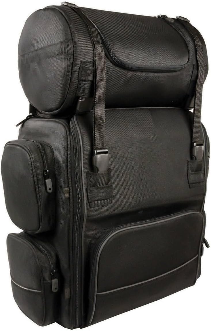 Milwaukee Leather SH680 Large Black Textile Motorcycle Sissy Bar Travel Bag - One Size