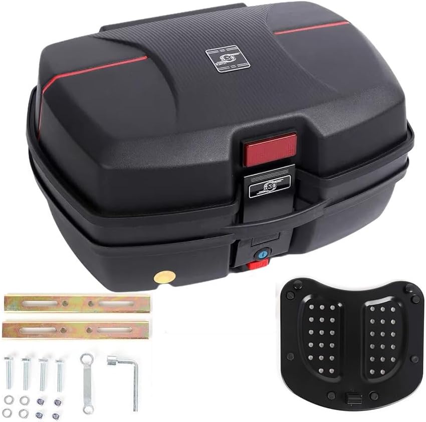 47L Motorcycle Trunk, Large Capacity Universal Scooter Trunk Luggage, Motorcycle Tail Box, Helmet Luggage Hard Case Storage Carrier Case with Mounting Hardware