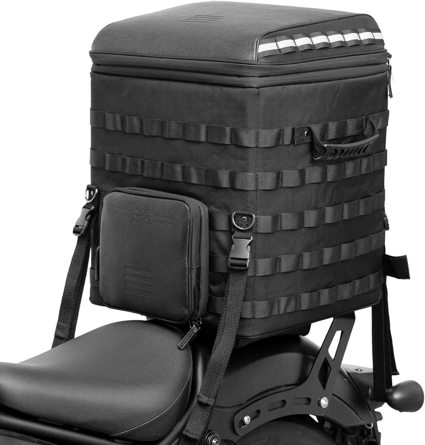 Rhinowalk Motorcycle Tail Bag, Expandable Motorcycle Travel Luggage Bags 33-45L, Waterproof All-Weather Trunk Rack Bag with Sissy Bar Straps & Helmet Rain Cover-Black