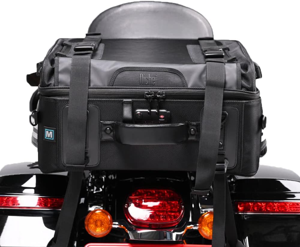 Niche Cruiser Motorcycle Tail Bag, 44L Rear Seat Bag with TSA Number Lock, High-Capacity Luggage for Travel, Helmet & Gear Bag with Waterproof Rain Cover - Universal Fit (NMO-2306)
