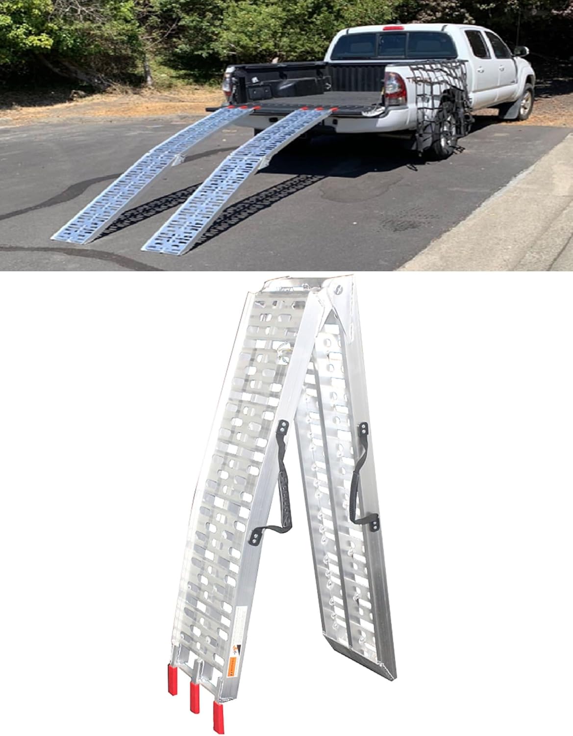 Heavy Duty Aluminum Loading Ramp: 1500Lb Capacity Foldable ATV Ramp w/Non-Slip Tread & Safety Strap, for Motorcycle/Truck