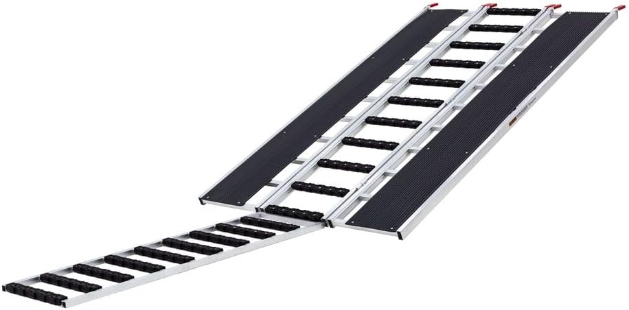 1500lbs Extra Wide Aluminum Tri-Fold Trailer Ramp - Heavy-Duty Portable Loading Ramps for Trucks, Motorcycles, Dirt Bikes & Mini ATVs - Secure Transport Straps Included