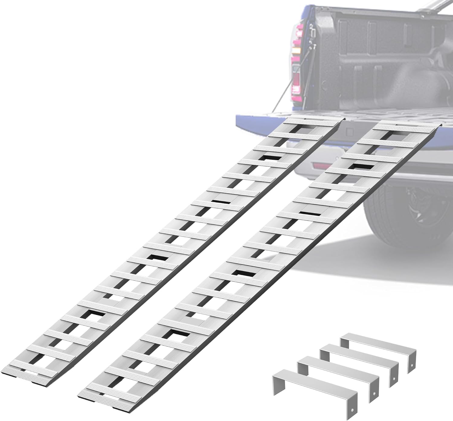 Albott 105" x 15" Aluminum Trailer Ramps, 10000 LBS Total Capacity Loading Ramps with U-Shaped Buckle and Hook Ends, 1 Pair for ATV, UTV, Tractors, Motorcycles, Lawnmowers, Trucks