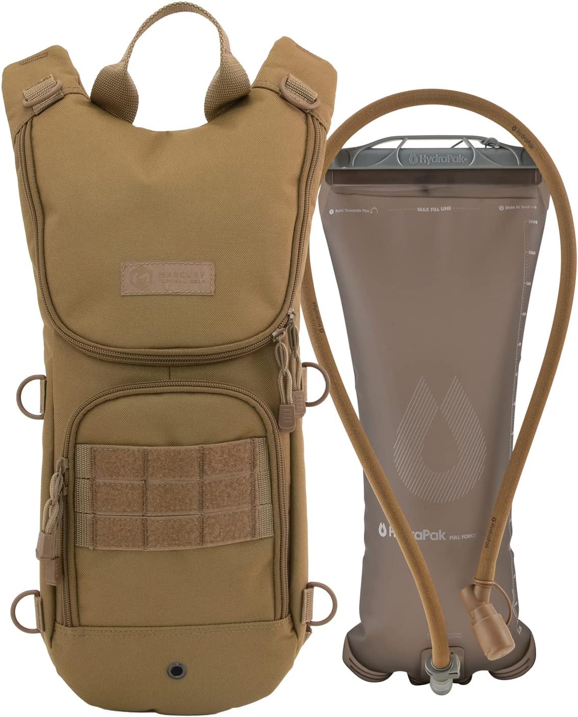 Mercury Tactical Gear Sprinter Hydration Water Pack Backpack, Hiking Backpack with Water Bladder, Military Running Hydration Vest, Coyote, TAA Compliant