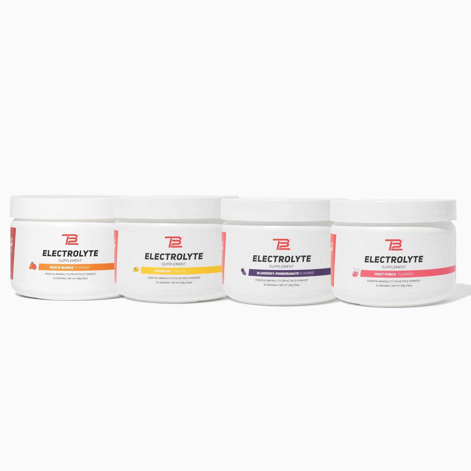 TB12 Electrolyte Powder for Fast Hydration by Tom Brady, 4-Pack Jars (Lemonade, Blueberry Pomegranate, Fruit Punch & Peach Mango), Natural, Easy to Mix. Low Sugar, Low Calorie (120 Servings)