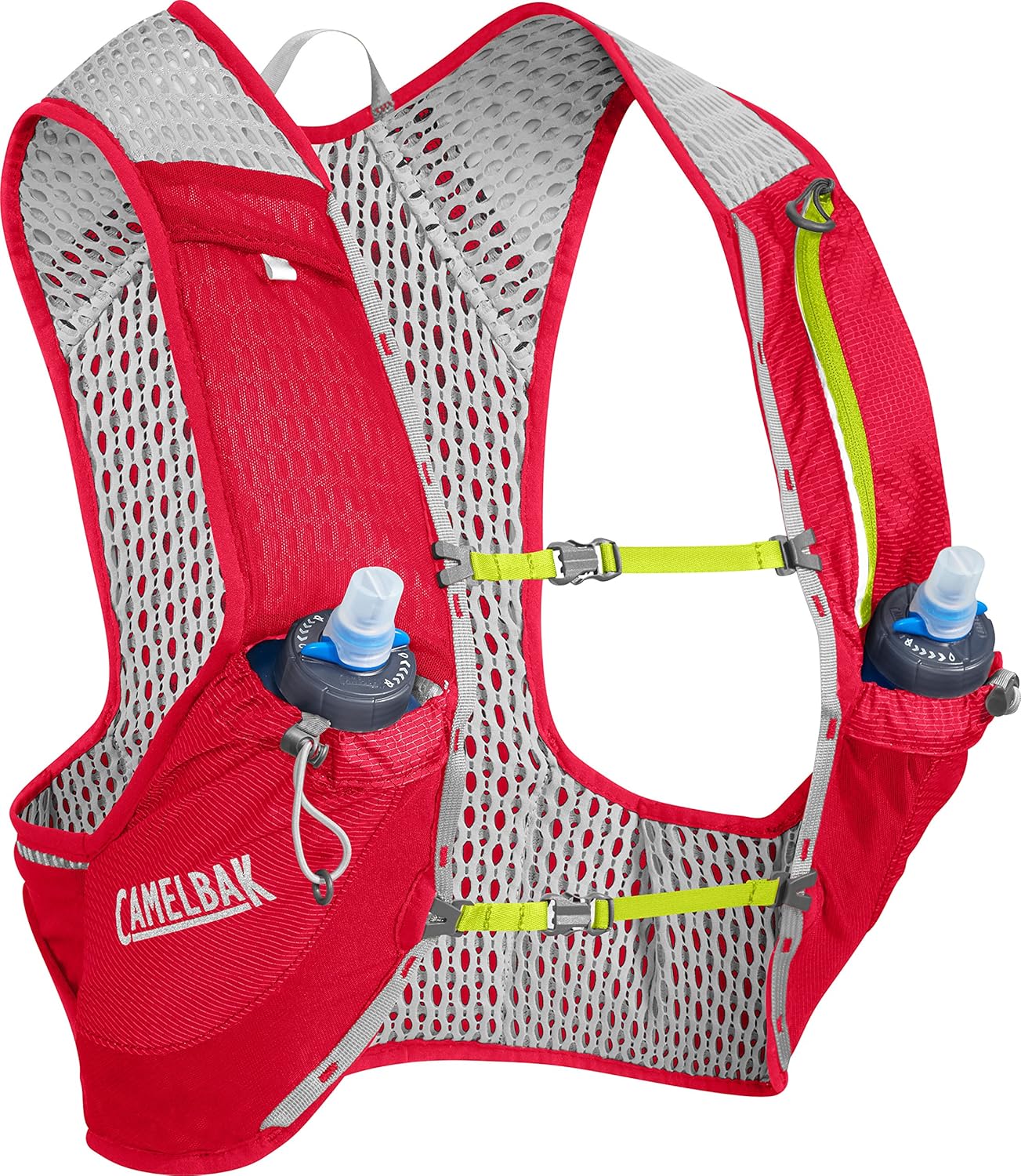 CamelBak Nano Vest 17 oz Quick Stow Flask Hydration Pack, Medium, Crimson Red/Lime Punch