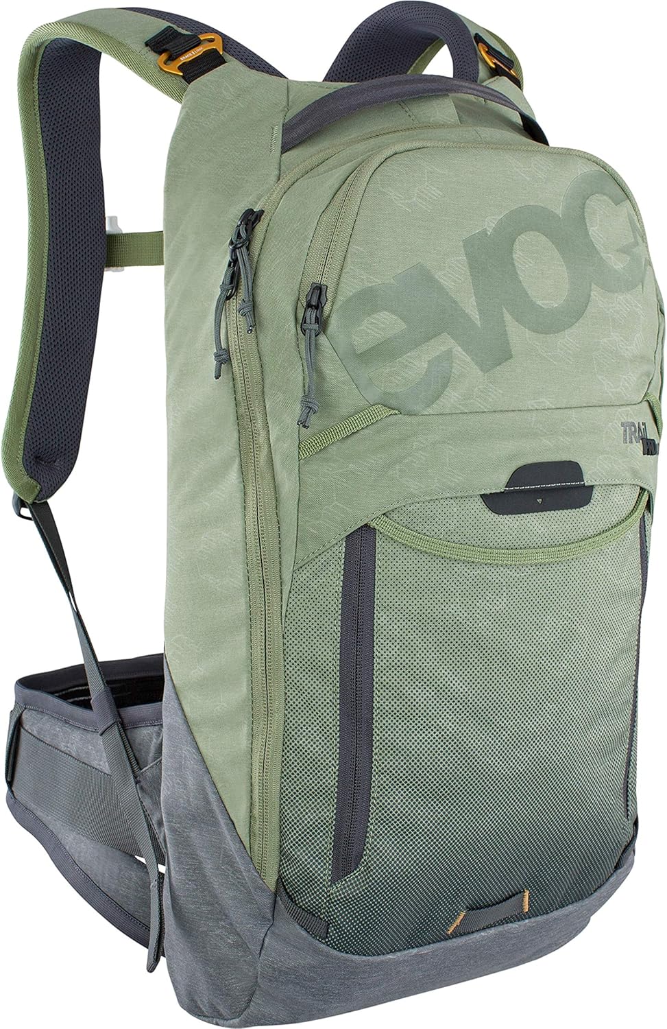 Evoc TRAIL PRO 10l protector backpack for day tours & trail riding (size: S/M, LITESHIELD PLUS back protector, lightweight, wide hip fins, 3l hydration bladder compartment), Olive/Carbon Grey